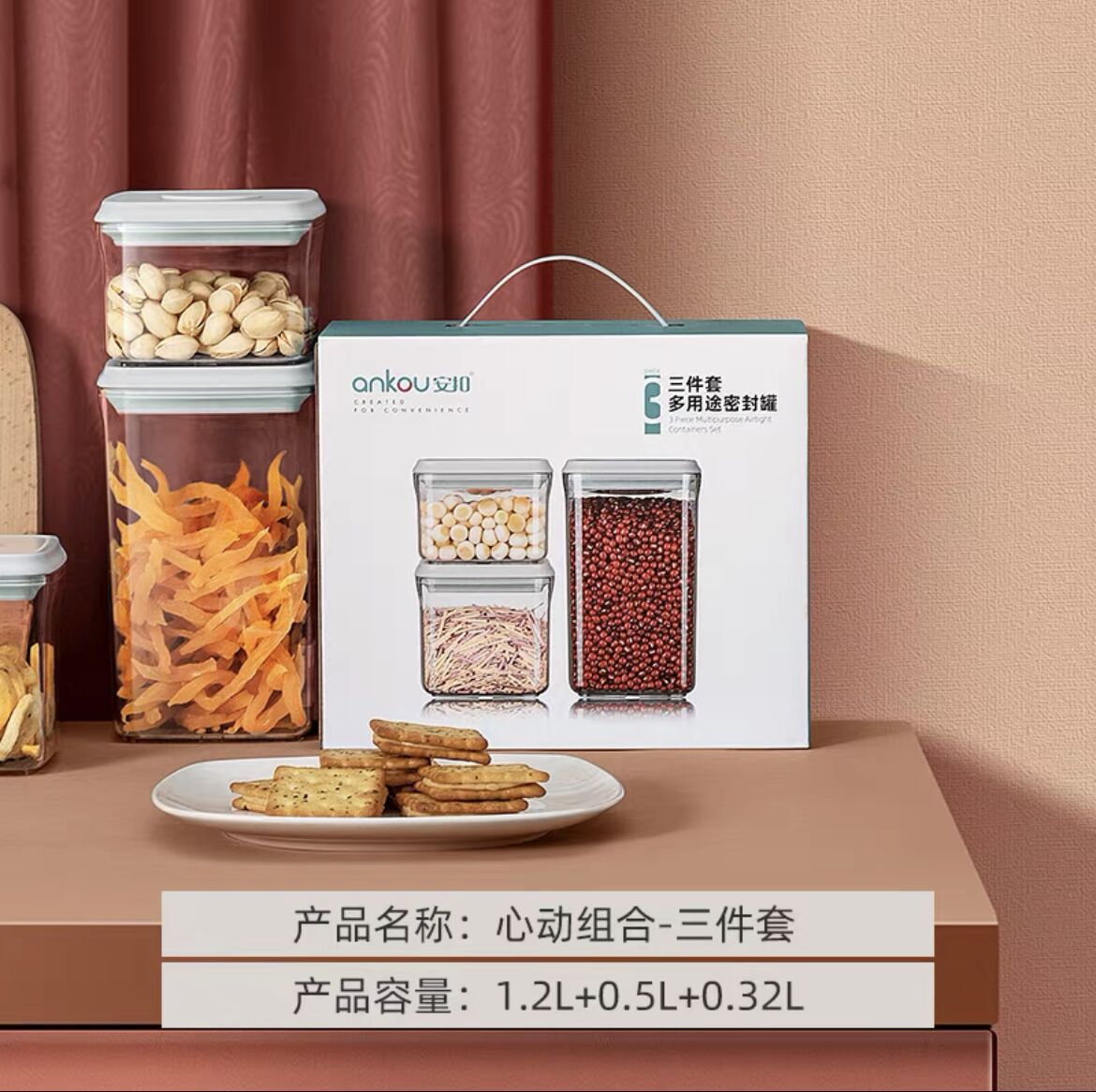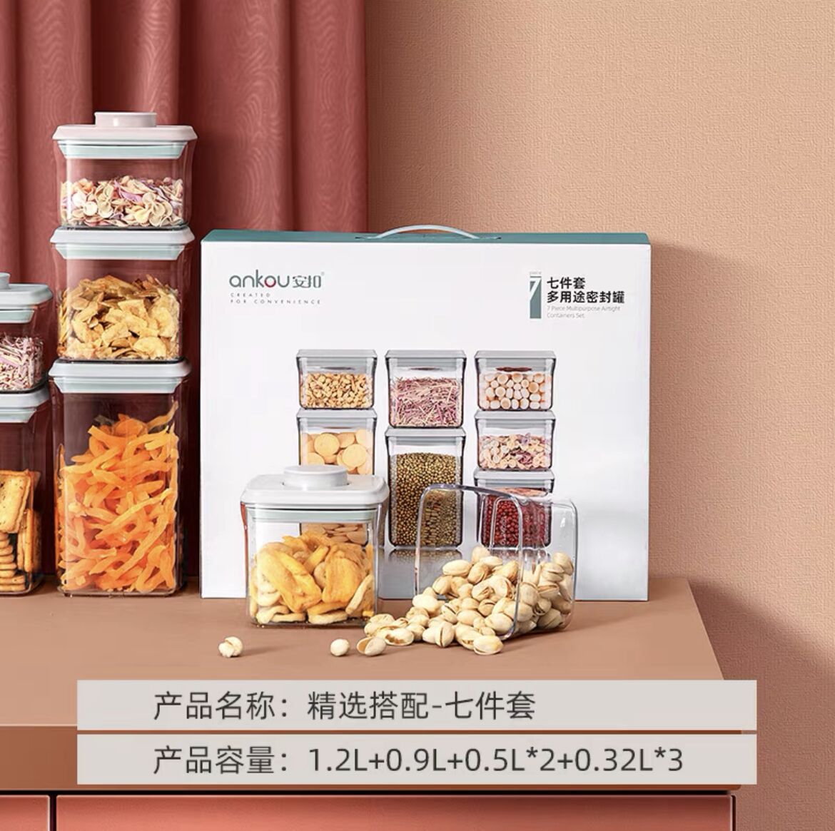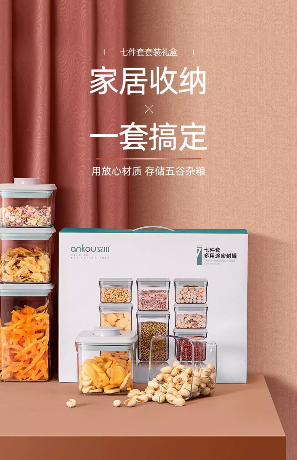 안쿠 주방용 가정 간식 밀폐 용기 보관함 견과류 잡곡 보관함 식품 선물 세트 밀폐 용기