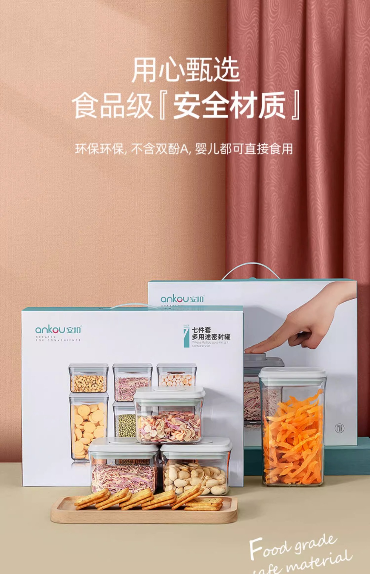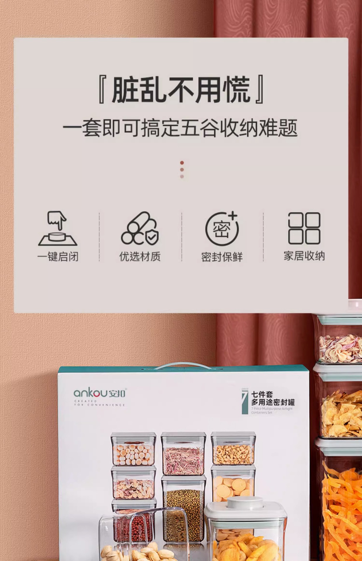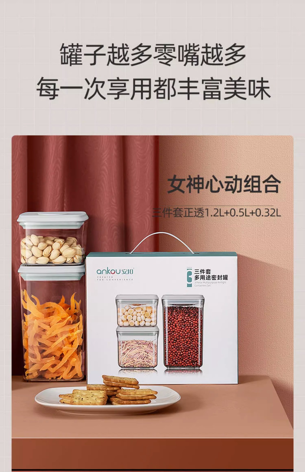 안쿠 주방용 가정 간식 밀폐 용기 보관함 견과류 잡곡 보관함 식품 선물 세트 밀폐 용기