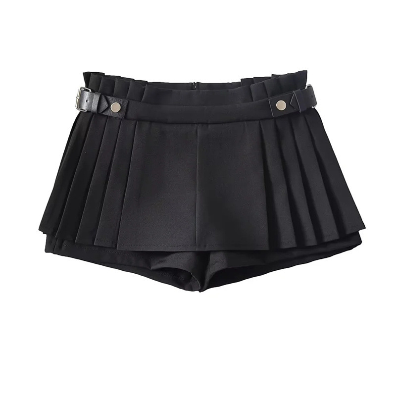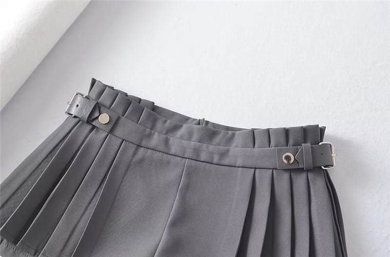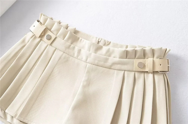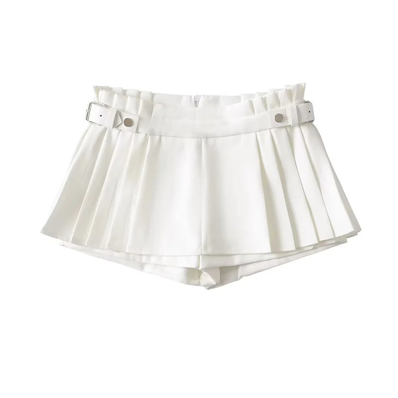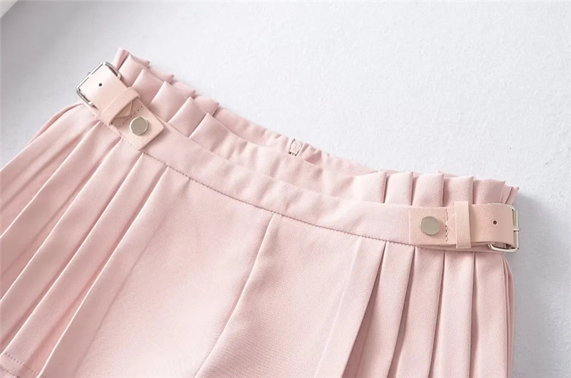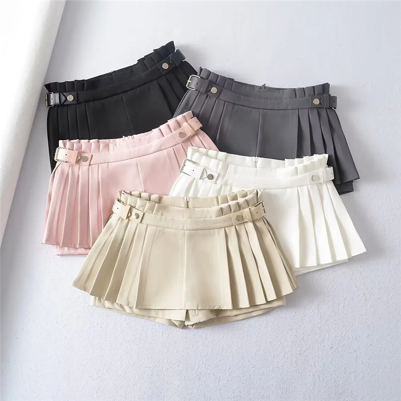 핫 걸 섹시 안티 러닝 라이트 짧은 스커트 여름 디자인 센스 벨트 플리츠 스커트 A 라인 단색 미니 스커트 여성 스커트