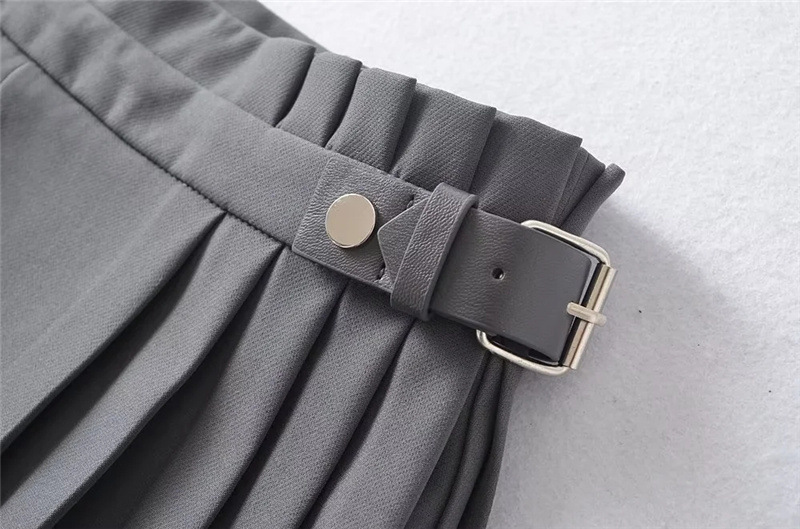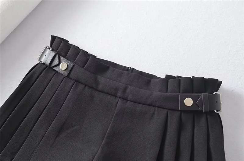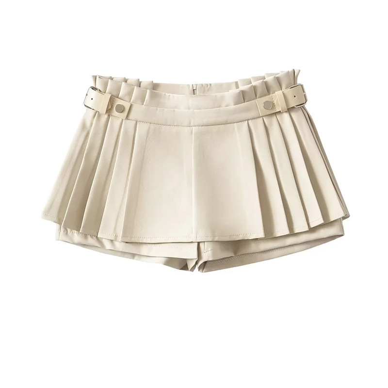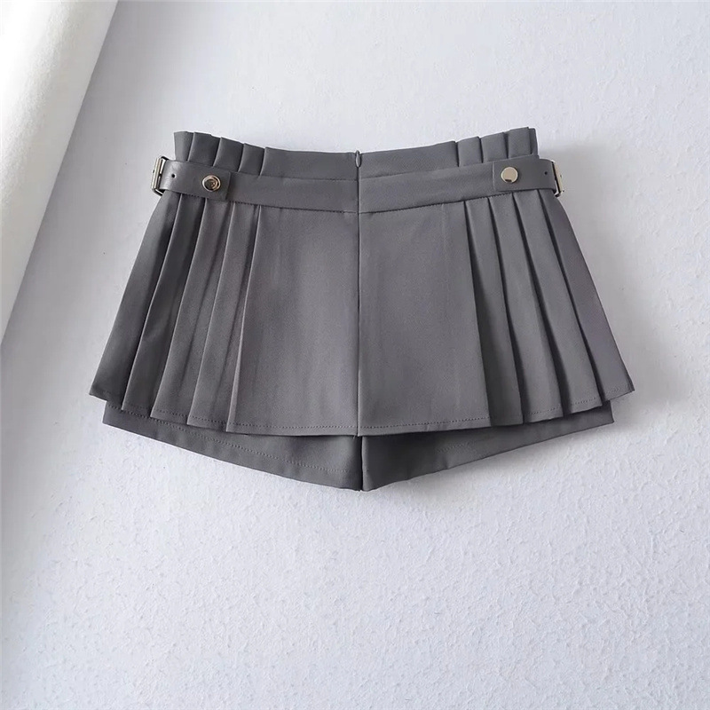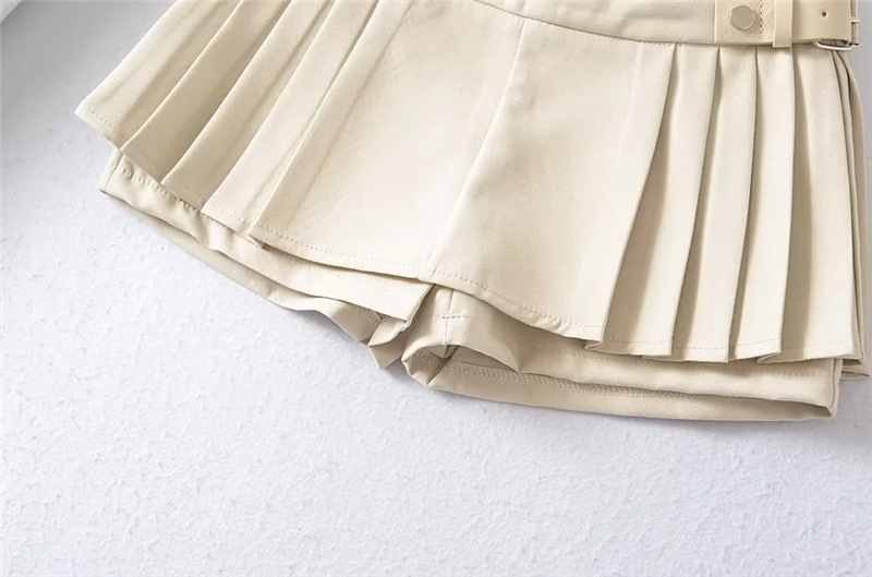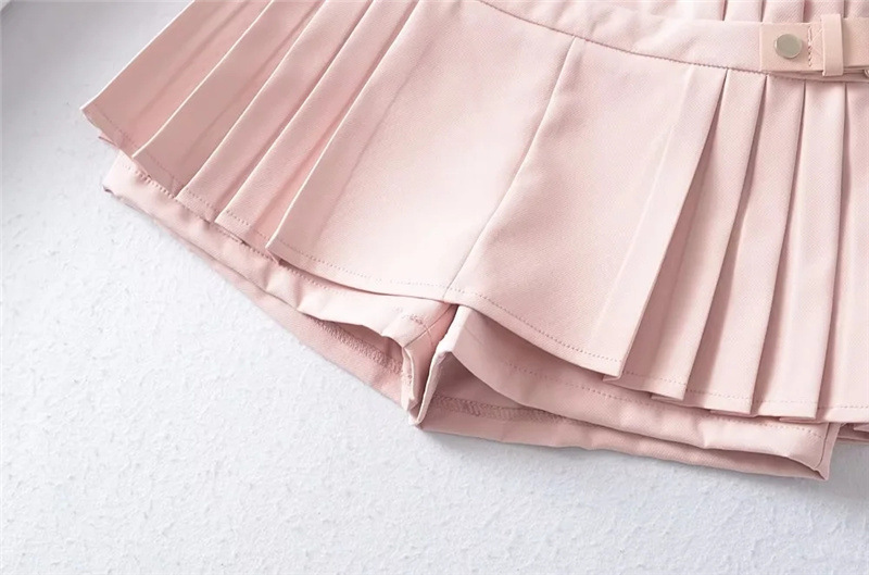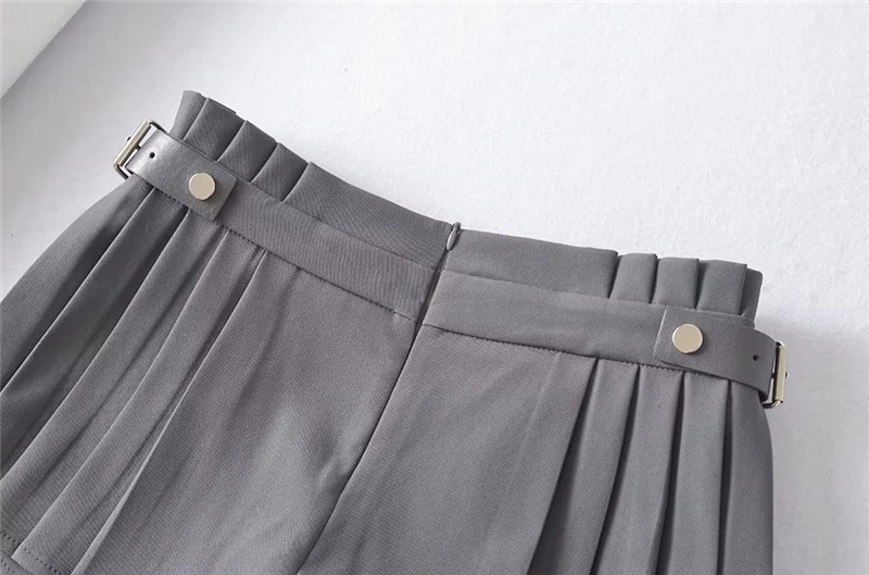 핫 걸 섹시 안티 러닝 라이트 짧은 스커트 여름 디자인 센스 벨트 플리츠 스커트 A 라인 단색 미니 스커트 여성 스커트