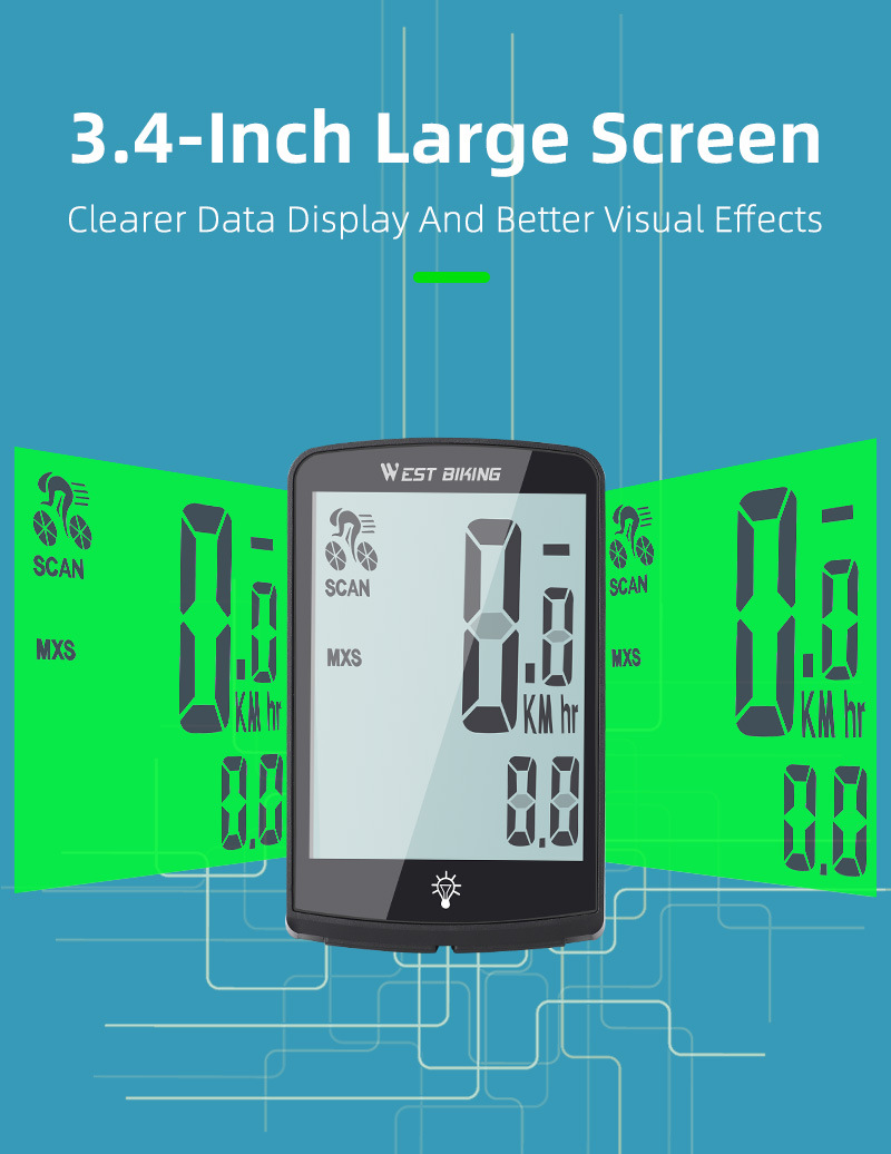WEST BIKING 자전거 코드 미터 대형 화면 속도계 업그레이드 센서를 APP 사이클링 코드 미터에 연결할 수 있습니다