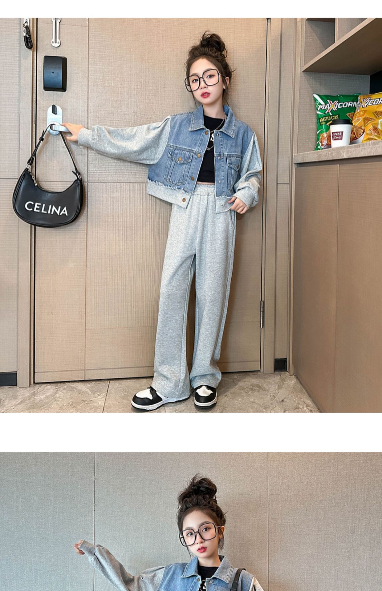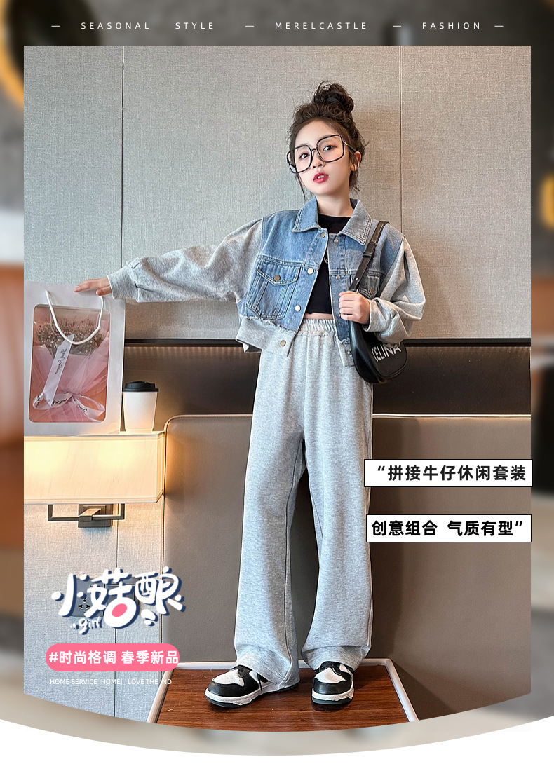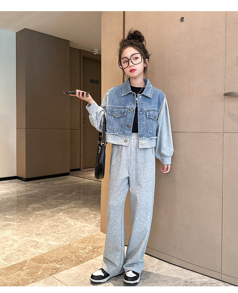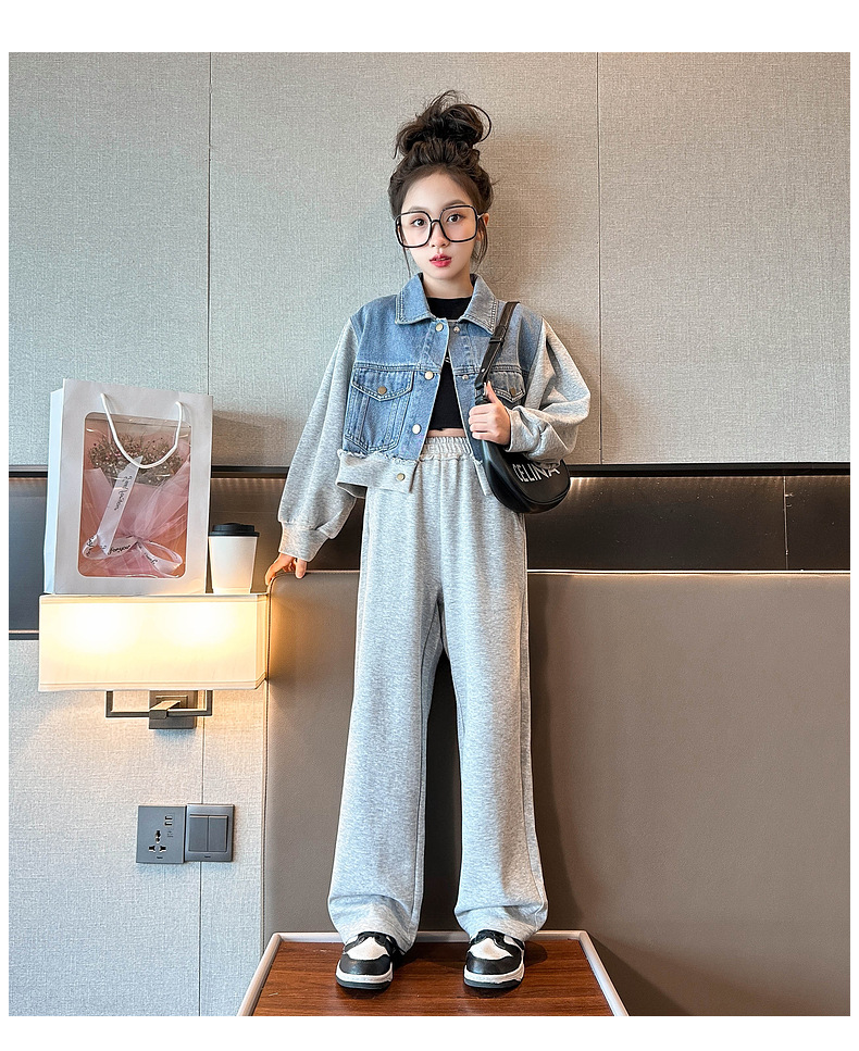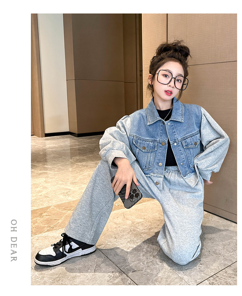 여자 봄, 가을 정장 2024 새로운 스타일 어린이 인터넷 연예인 패션 의류 부모-자식 의류 여자 아동 재킷 투피스 세트스토어 가기