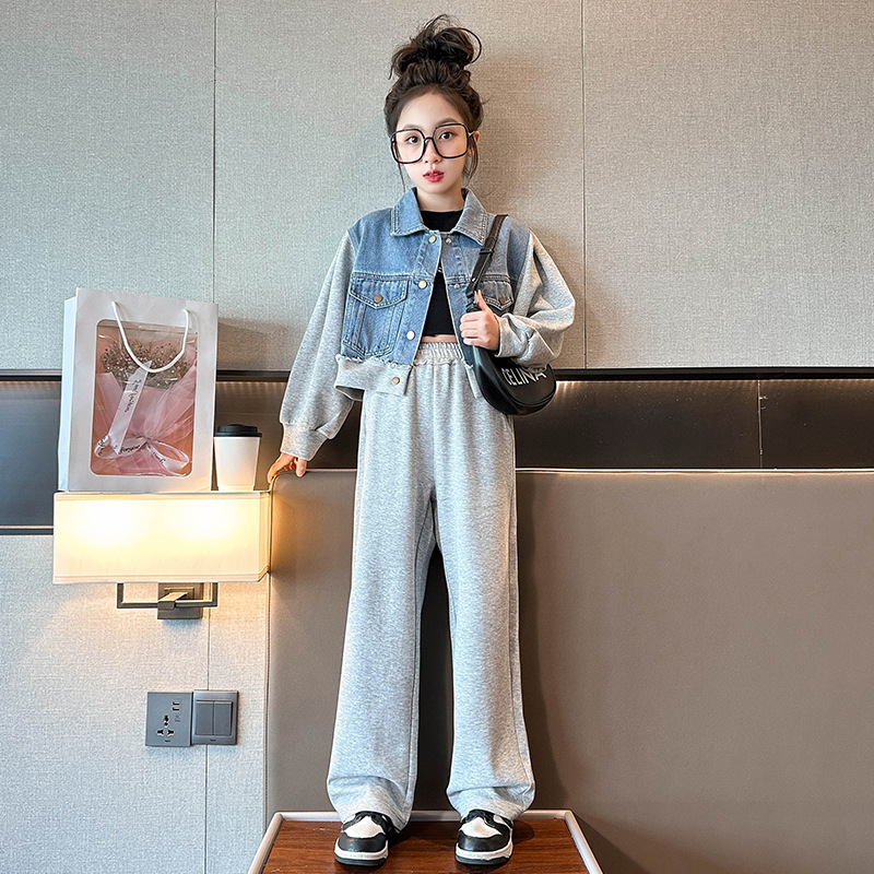 여자 봄, 가을 정장 2024 새로운 스타일 어린이 인터넷 연예인 패션 의류 부모-자식 의류 여자 아동 재킷 투피스 세트