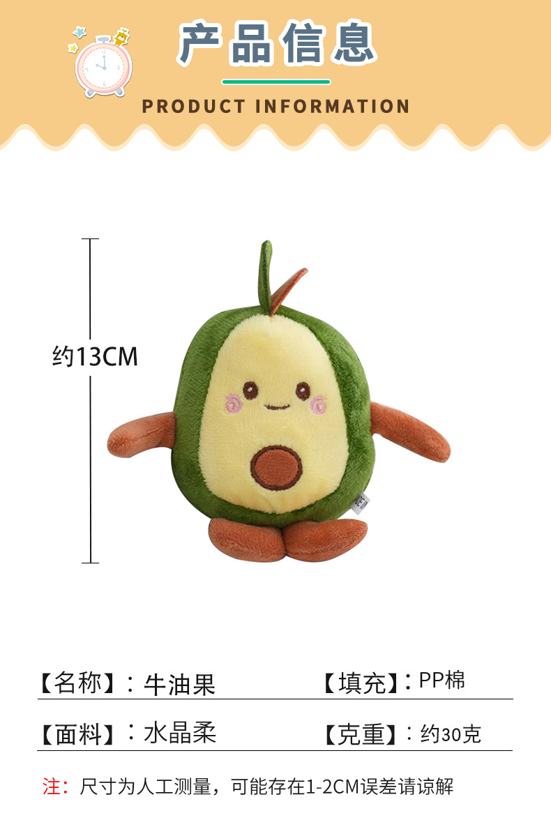 못생긴 사랑스러운 아보카도 플러시 키 체인 펜던트 과일 플러시 작은 인형 미니 아보카도 플러시 장난감 펜던트스토어 가기