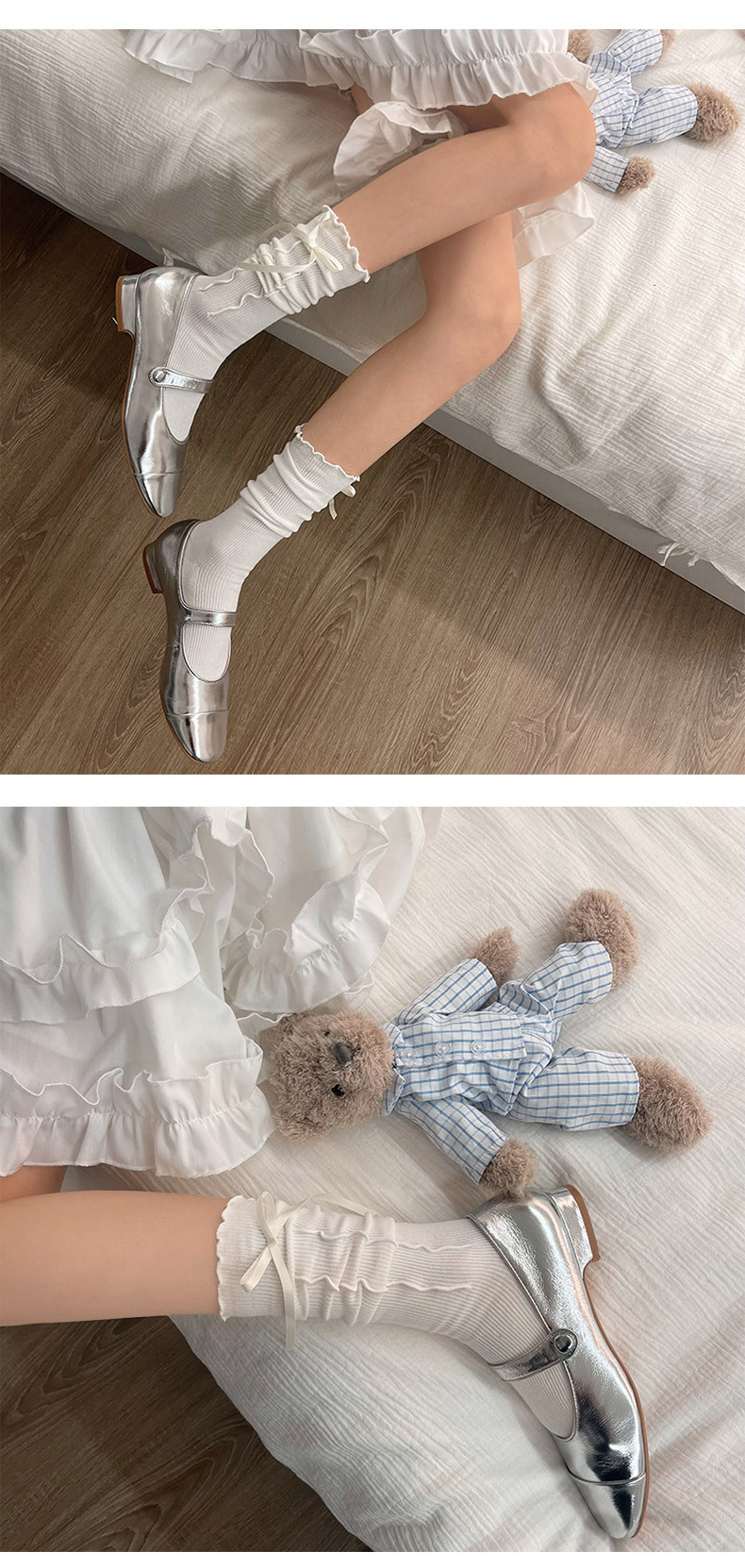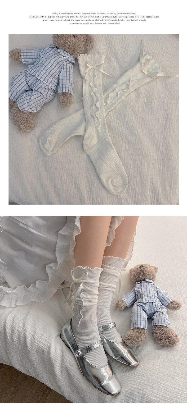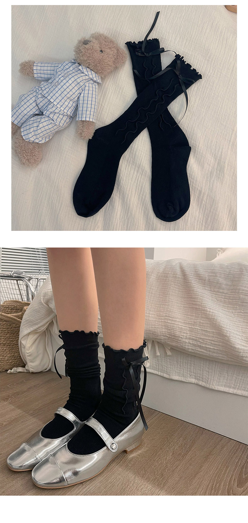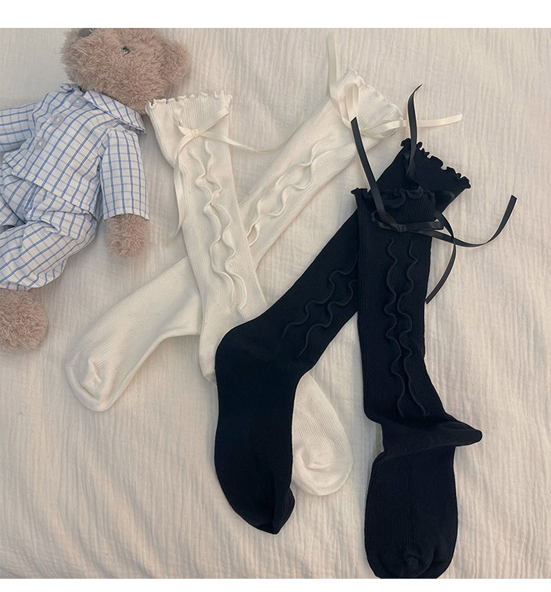 한국 동대문 드래곤 하트 중간 배럴 나무 가장자리 활 리본 소녀의 긴 배럴 쌓인 양말 학생 커프 양말스토어 가기