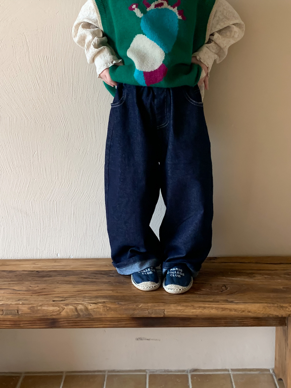 아동용 바지 2025 가을 여아용 한국 스타일 단색 데님 스트레이트 팬츠 아동 캐주얼 루즈핏 와이드 팬츠스토어 가기