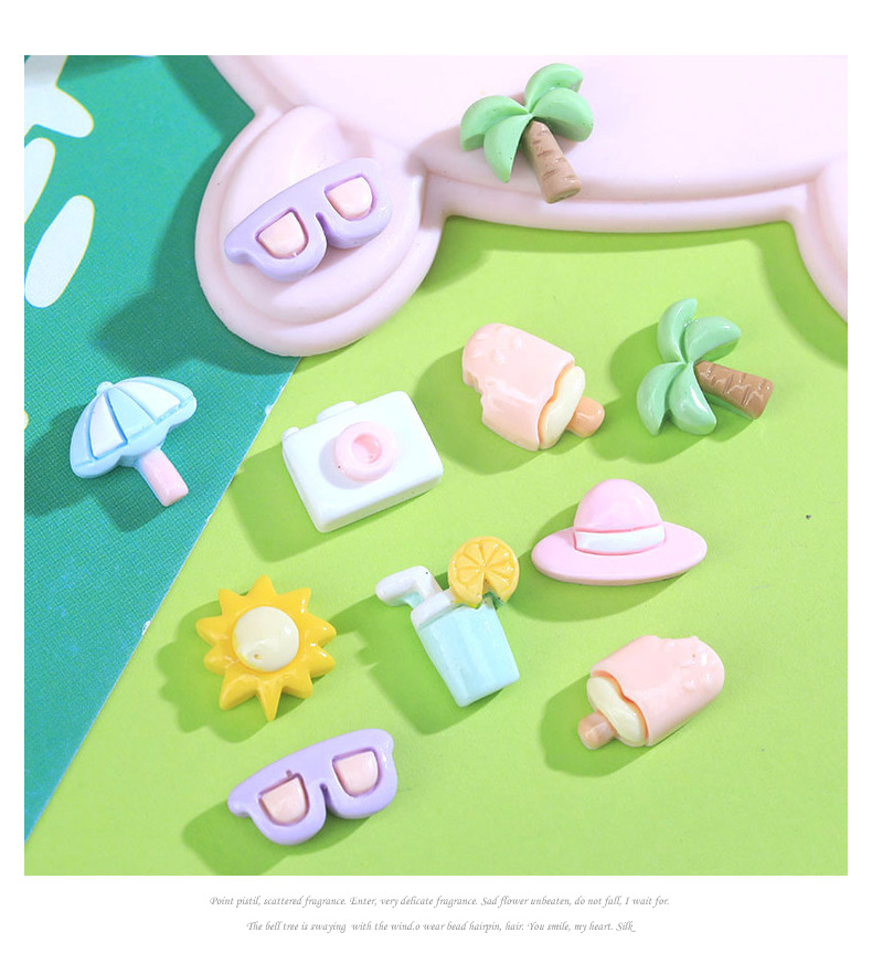 미니 귀여운 비치 시리즈 네일 수지 액세서리 코코넛 나무 안경 물 컵 아이스크림 카메라 우산