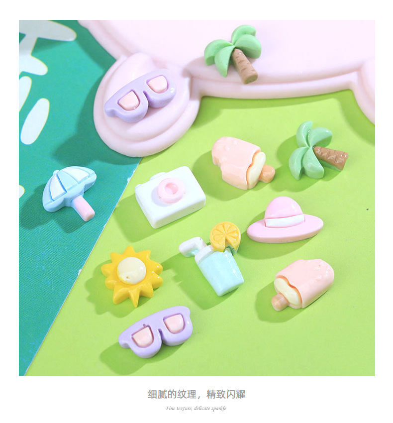 미니 귀여운 비치 시리즈 네일 수지 액세서리 코코넛 나무 안경 물 컵 아이스크림 카메라 우산스토어 가기