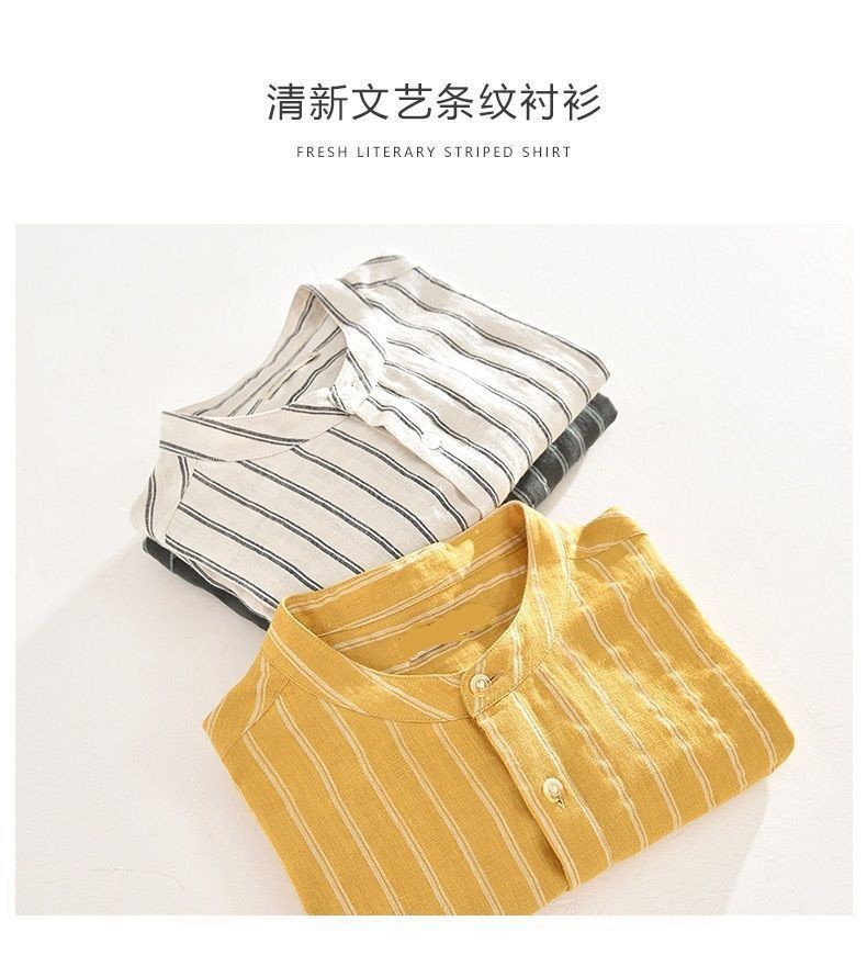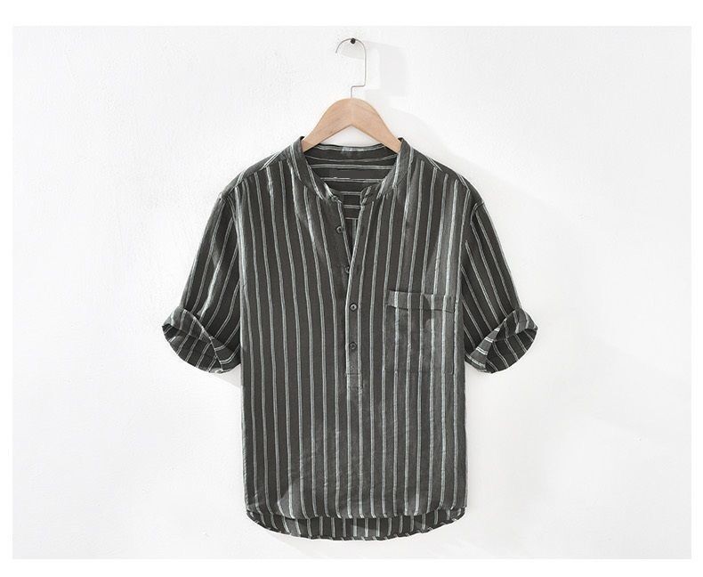 남성용 스트라이프 일본식 반팔 셔츠, 트렌디한 여름 루즈한 얇은 스탠드 칼라 풀오버 셔츠, 남성용 트렌디한 인치 셔츠스토어 가기