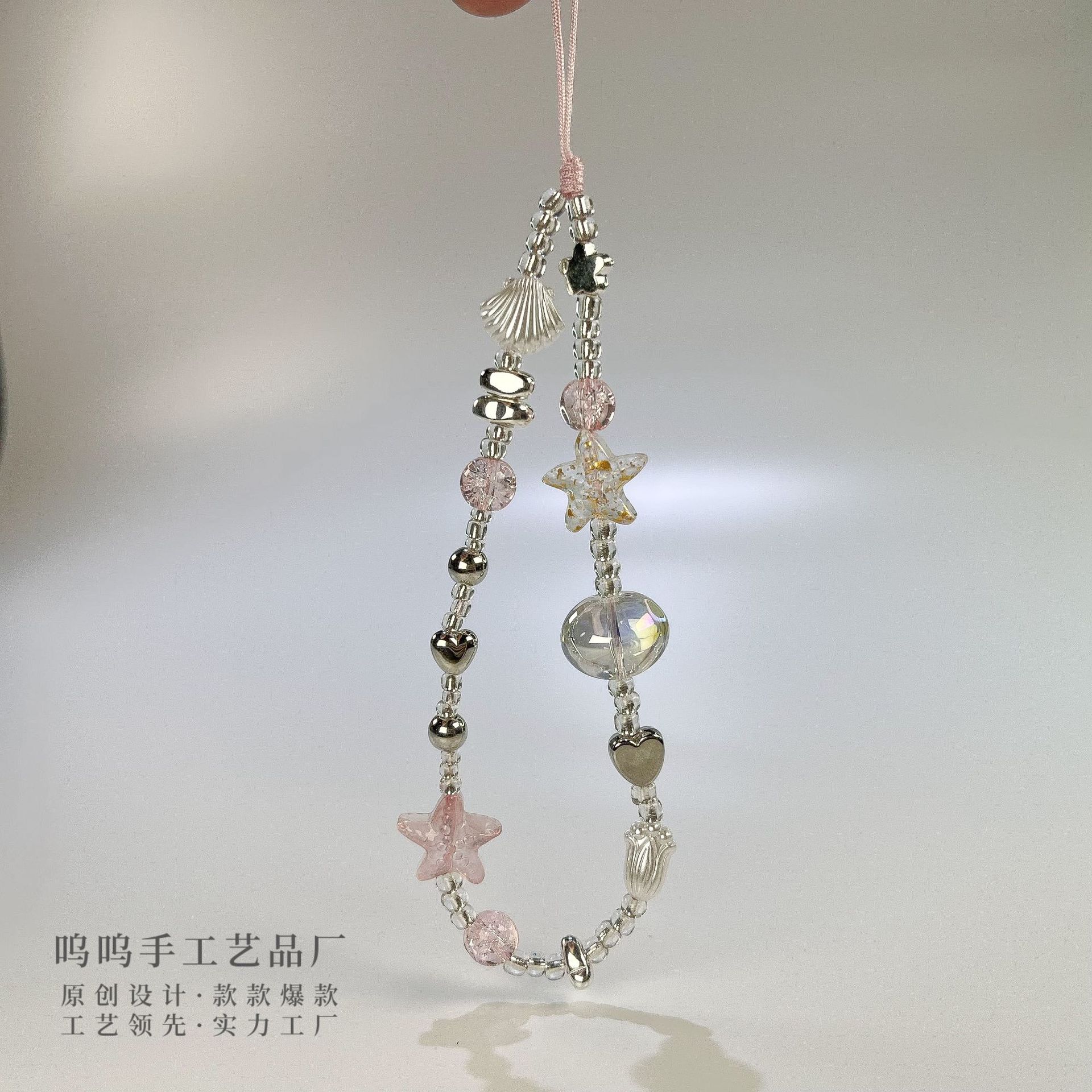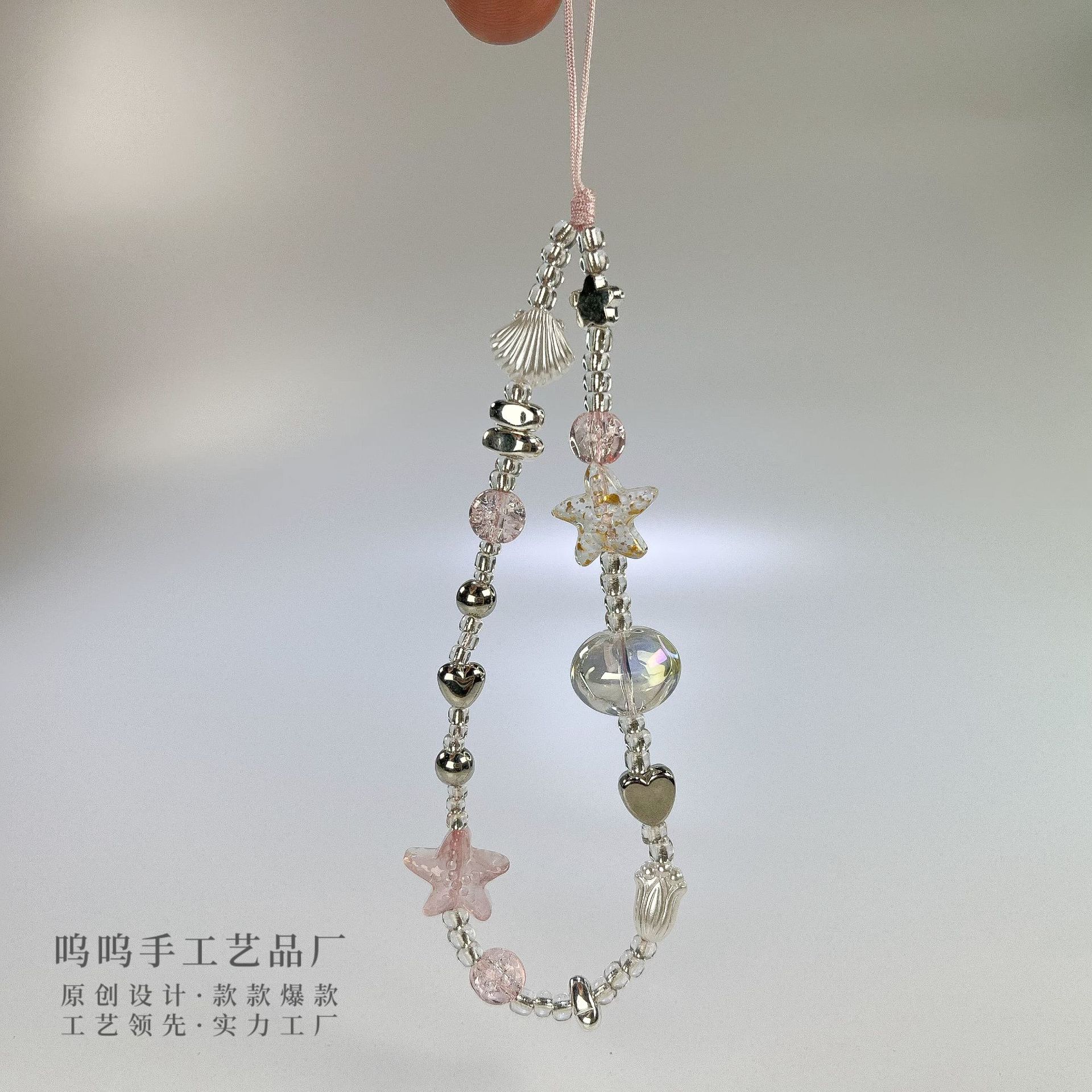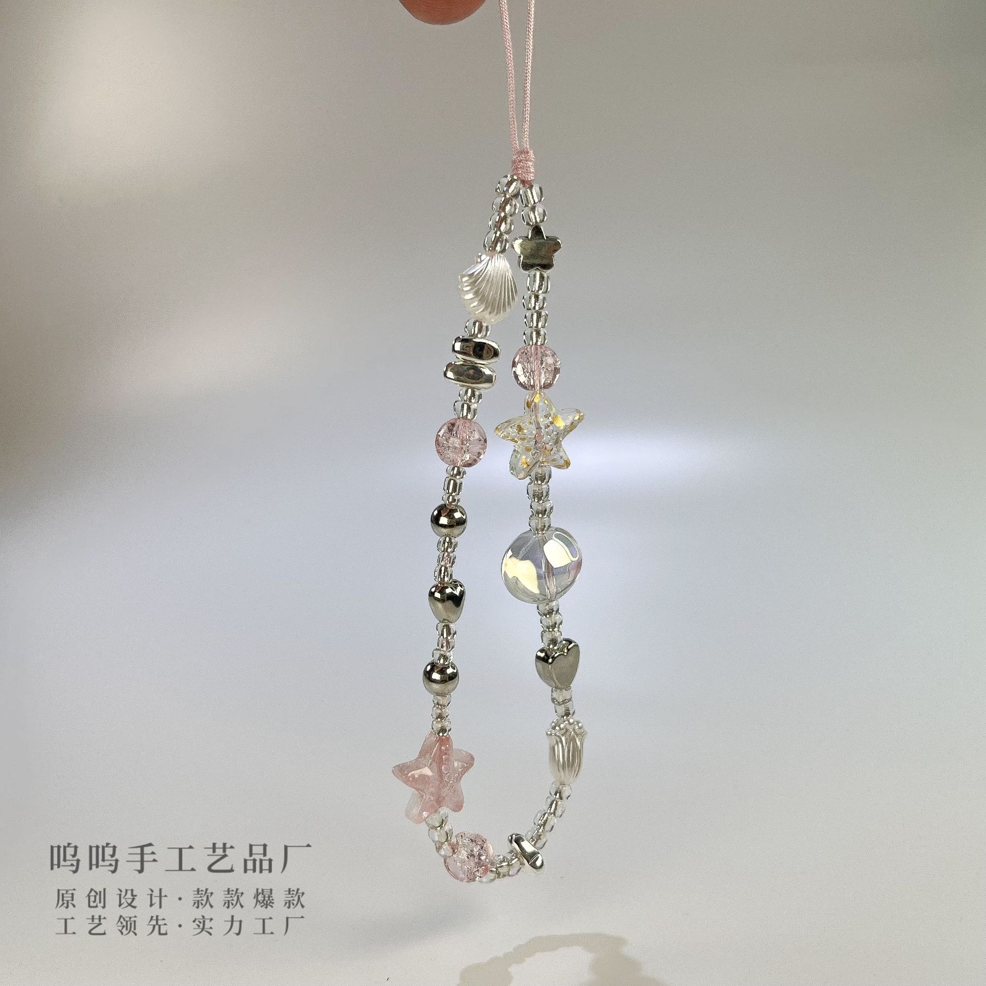 우우 새로운 핑크 바다 전설 휴대 전화 체인 수제 구슬 투명 핑크 질감 휴대 전화 체인 트렌디 한 소녀 끈