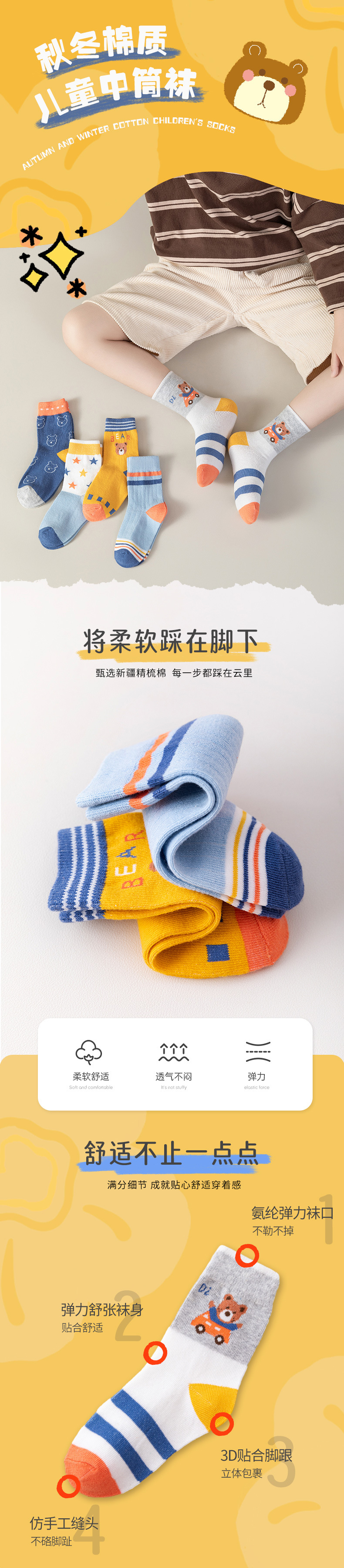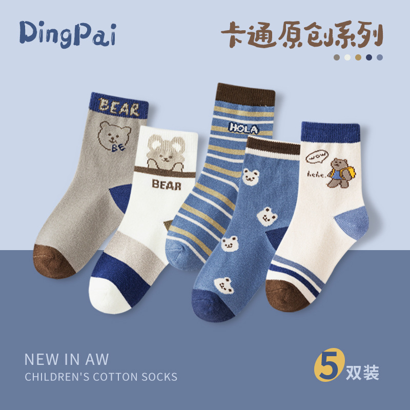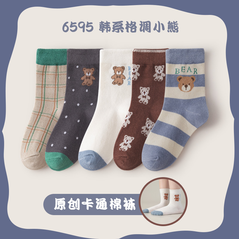 봄 새로운 어린이 양말 스타일 곰 면화 양말 소년 소녀를위한 만화 스포츠 양말 클래스 A 아기 양말스토어 가기