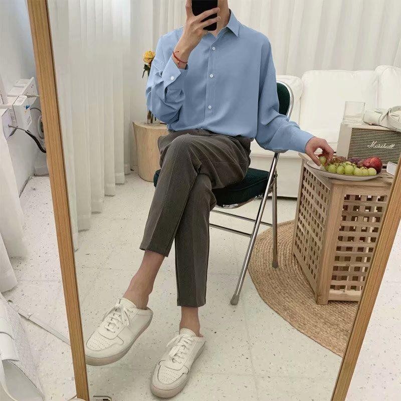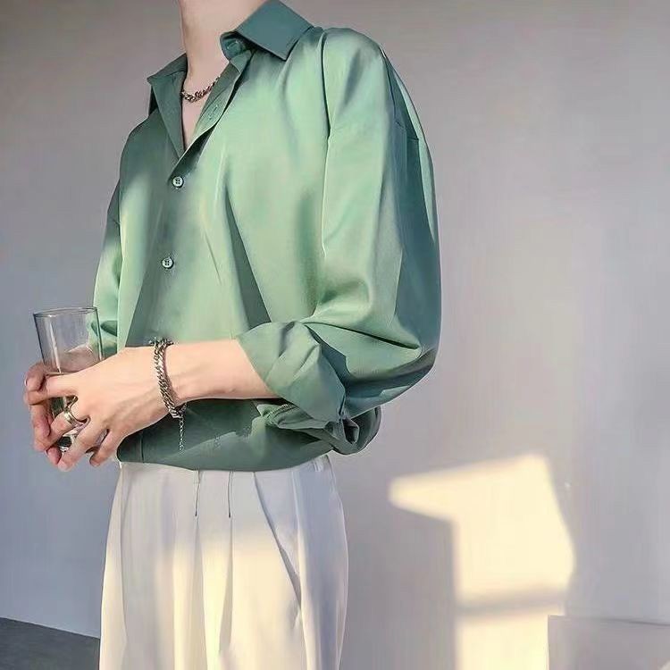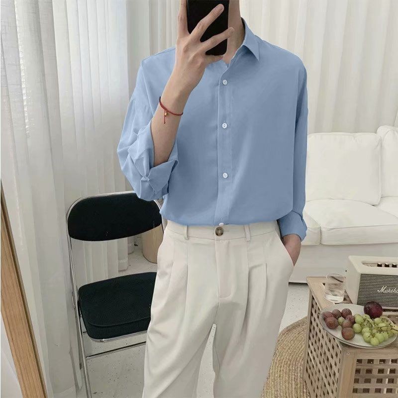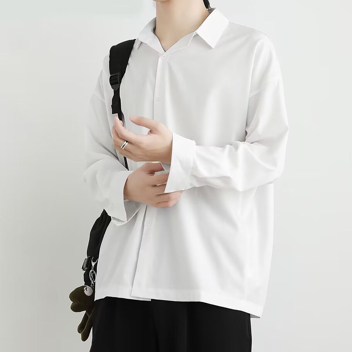 드레이프 블랙 셔츠 남성용 긴팔 봄과 가을 겨울 고급 느낌 Ruffian 잘생긴 남성 캐주얼 남성 슬림핏 화이트 셔츠 트렌디스토어 가기