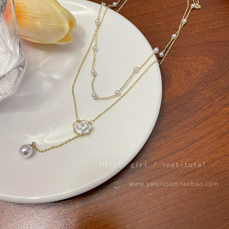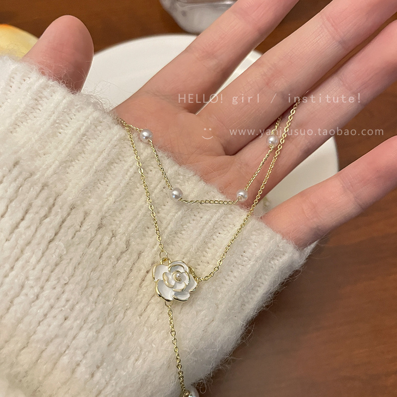 더블 레이어 술 진주 목걸이 여성 틈새 디자인 카멜리아 쇄골 체인 라이트 럭셔리 고급 기질 넥 체인