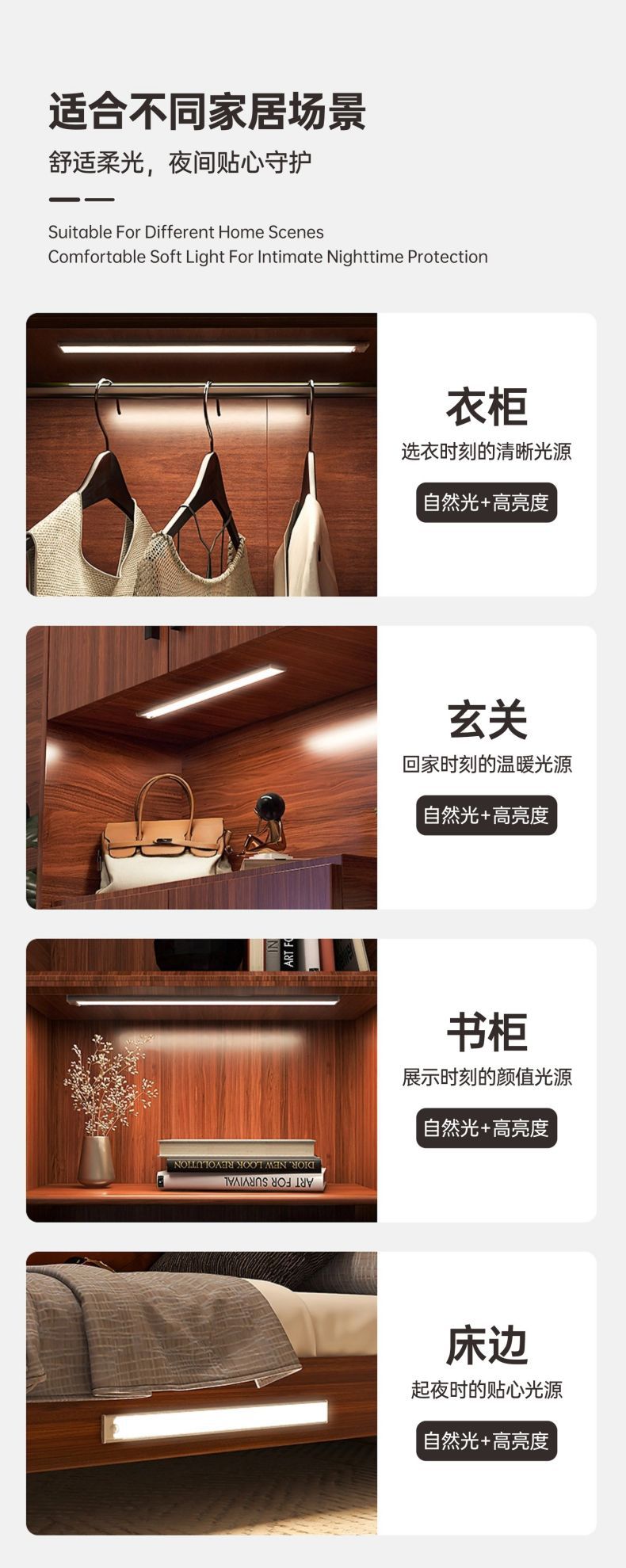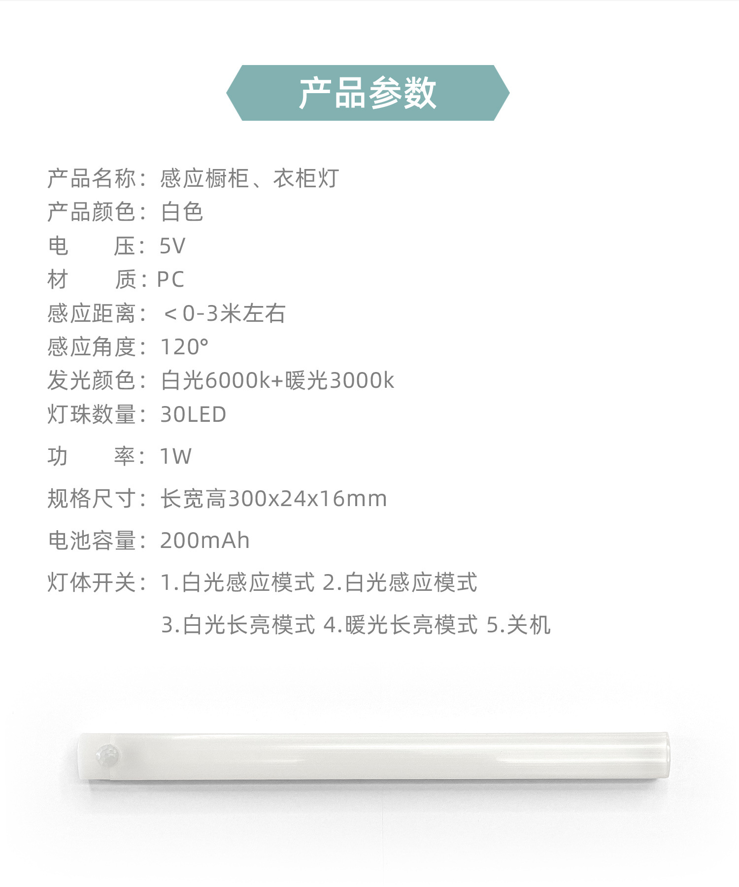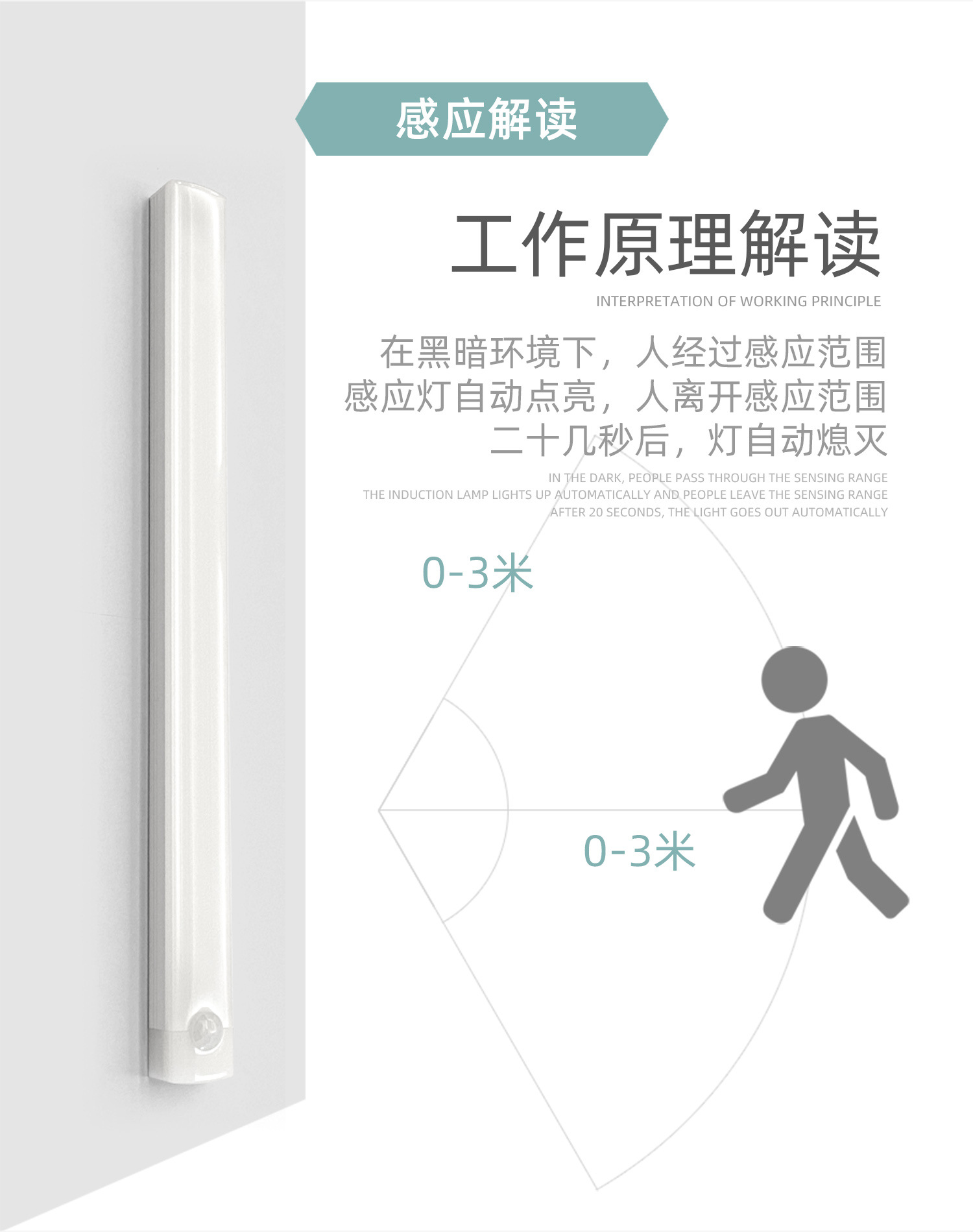 3.本产品带光控功能,请在暗光环境下尝试感应模式