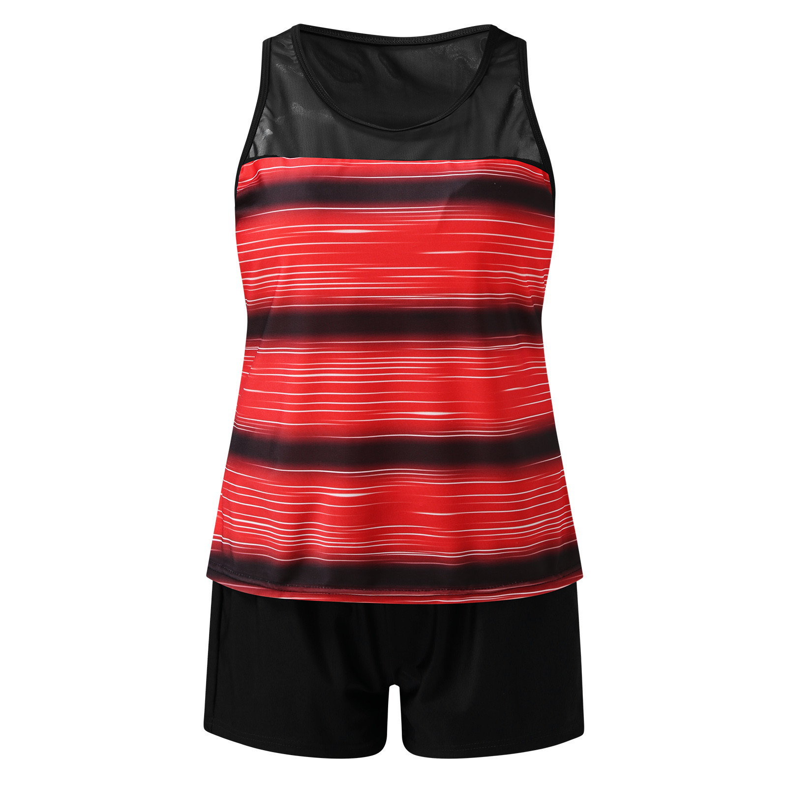크로스 보더 새로운 유럽 및 미국 여성용 스플릿 수영복 그라데이션 크로스 스트라이프 프린트 보수적 인 복서 수영복 비키니스토어 가기