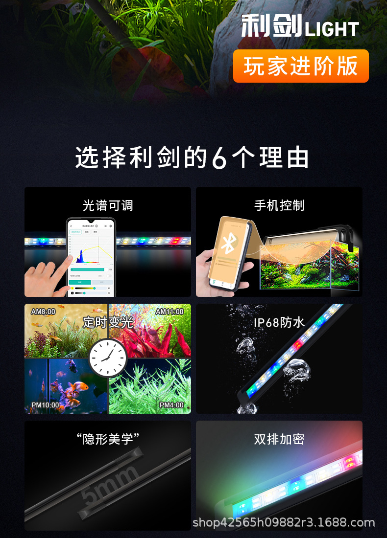 검 물고기 탱크 led 전체 스펙트럼 전문 디밍 타이밍 조명 방수 폭발 조류 다채로운 잔디 탱크 풍경 물 잔디 램프스토어 가기