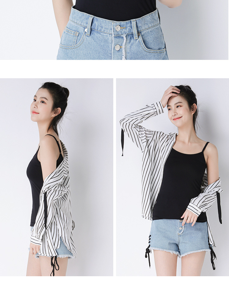 2025 년 여름 새로운 모달 카미솔 여성용 화이트 슬림 핏 얇은 외곽베이스 셔츠