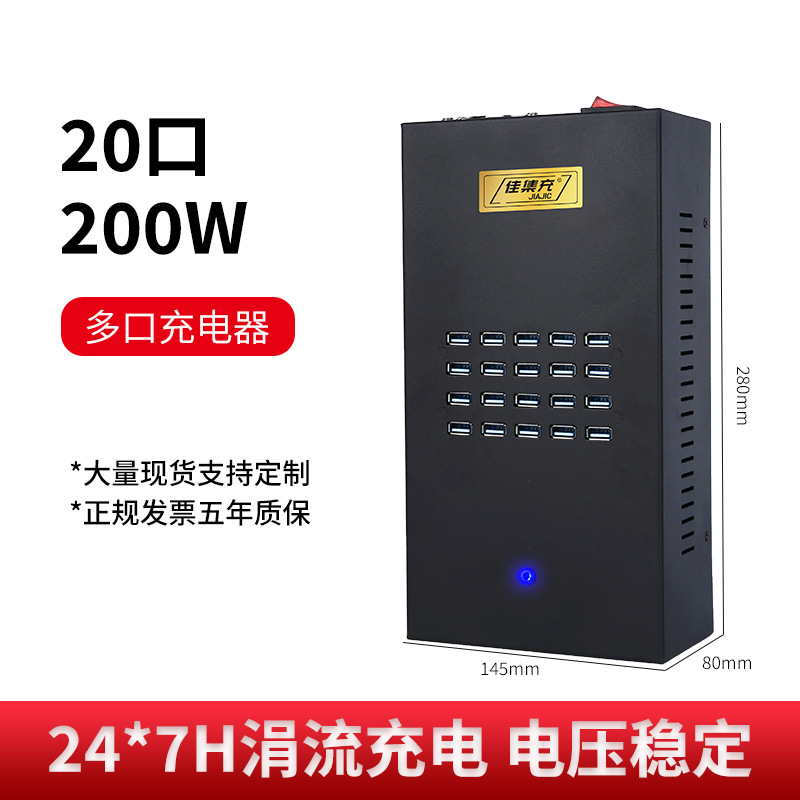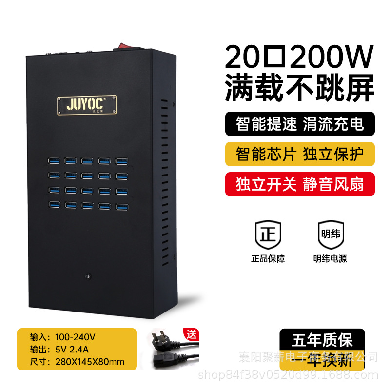 • 20 포트 허브 (200W)2.4A 충전 + 데이터 전송