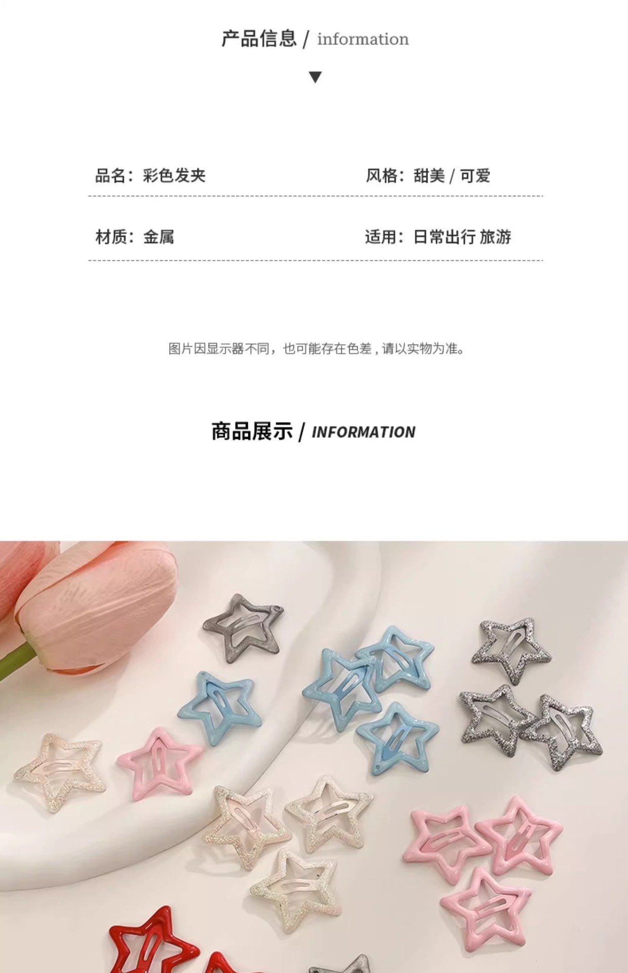 캔디 컬러 스타 머리핀 도파민 액세서리 y2k 머리핀 여성용 다섯개 별 클립 모자 앞머리 다채로운 클립