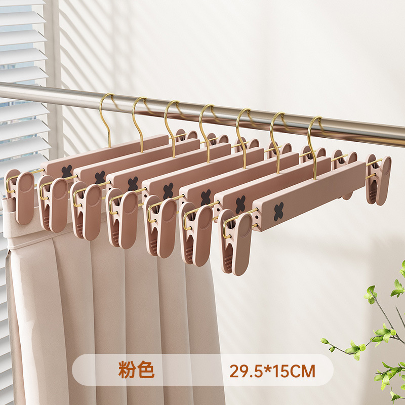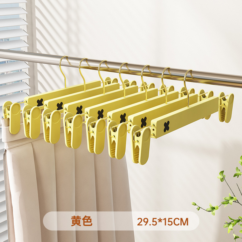 새로운 골드 후크 x 색상 일치 텔레스코픽 프로스트 바지 랙 플라스틱 바지 클립 의류 매장 가정용 성인 추적 행거 색상