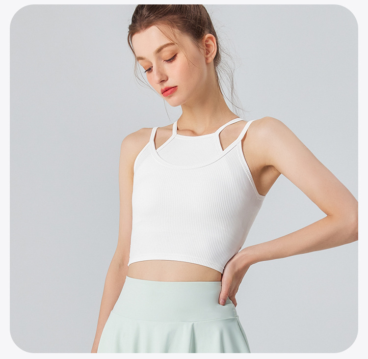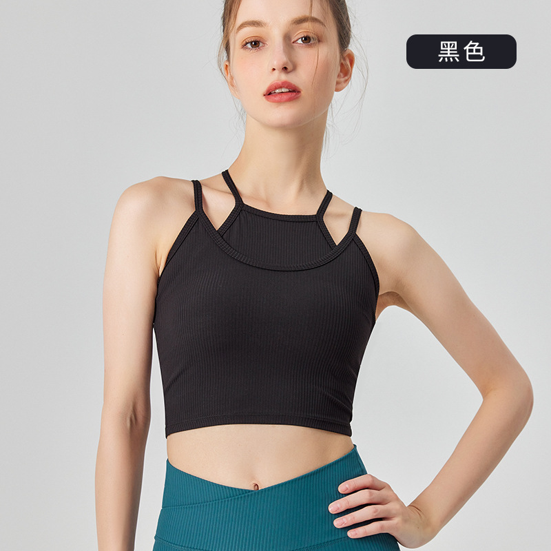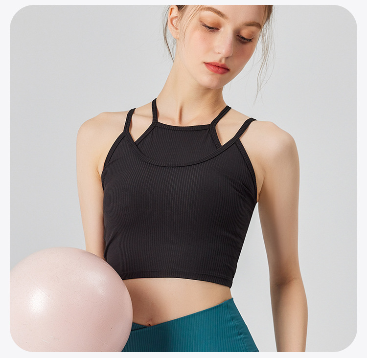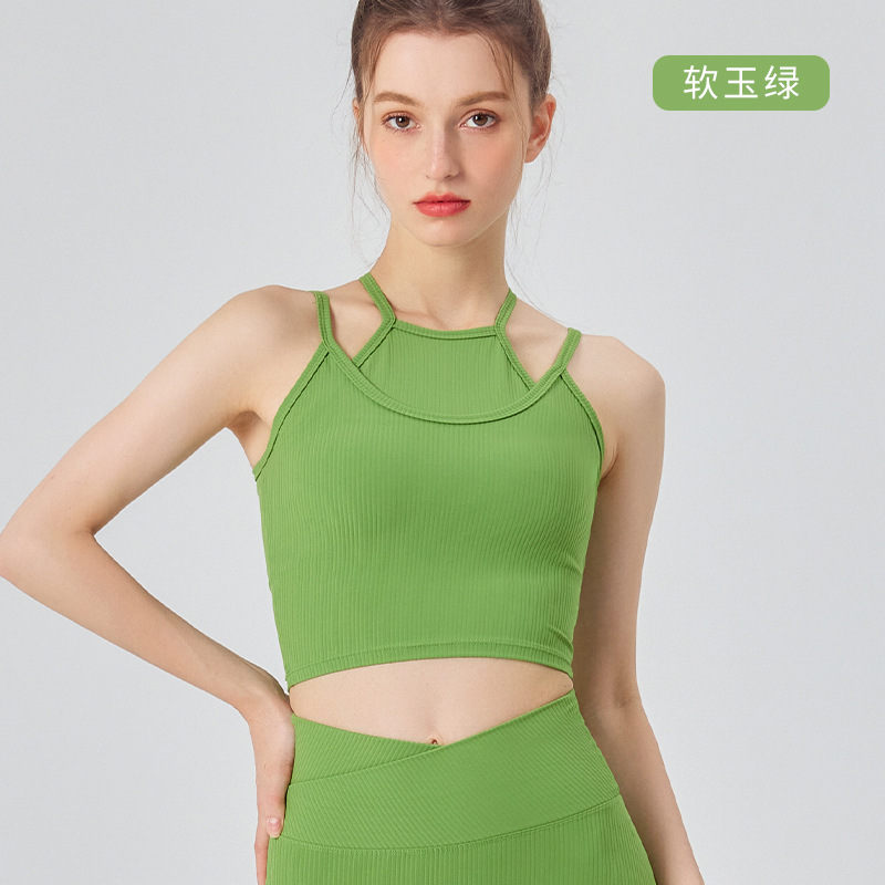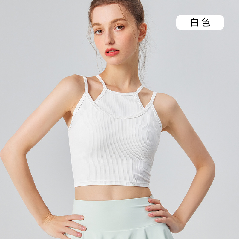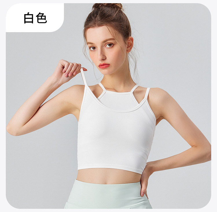 분리형 스포츠 속옷 여성용 충격 방지 달리기 요가 피트니스 조끼 가짜 투피스 파라 브라 여름 미용 백스토어 가기