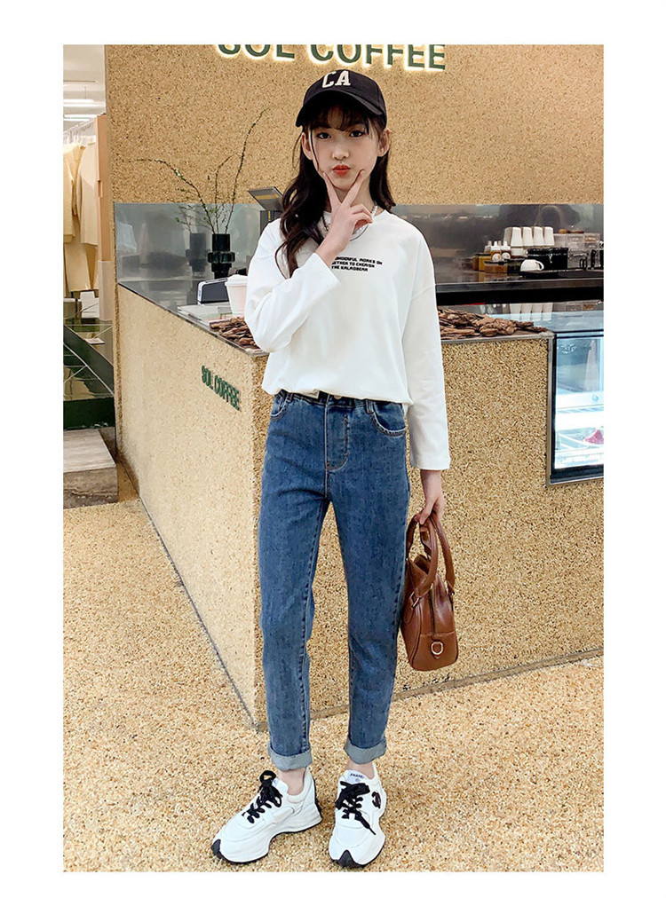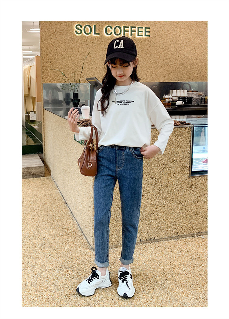여아 바지 봄과 가을 2023 새로운 스타일 여아 캐주얼 바지 아동 봄 옷 모든 매치 청바지