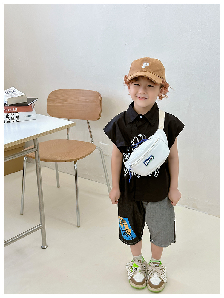2023 여름 새로운 어린이 가방 패션 편지 옥스포드 천 크로스 바디 허리 가방 소년과 소녀 어깨 캐주얼 보관 가방