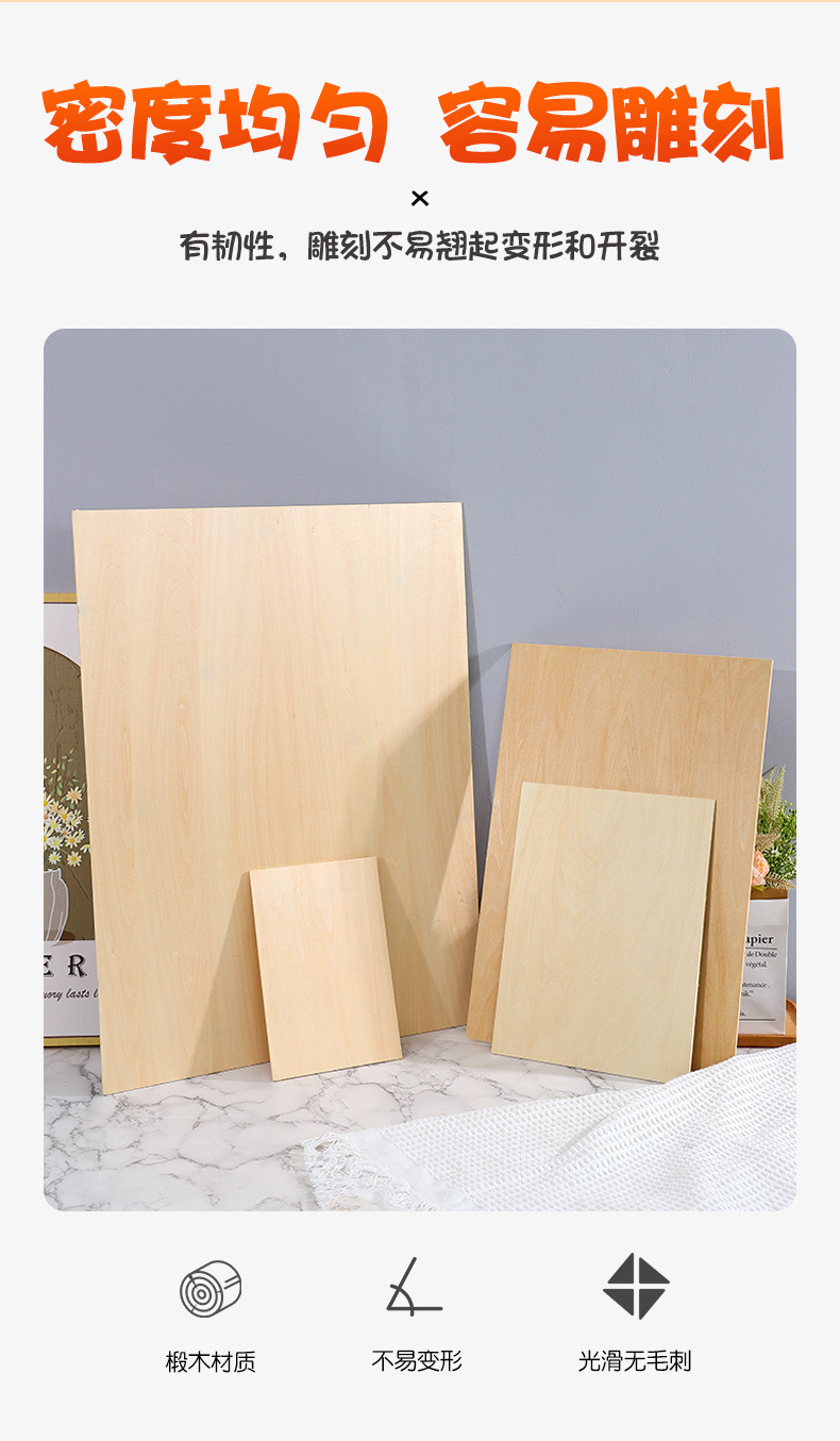 Basswood 나무 조각 보드 도매 양면 단단한 나무 빈 나무 조각 보드 인쇄 예술 그림 자료 Basswood 조각 보드스토어 가기