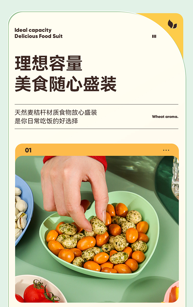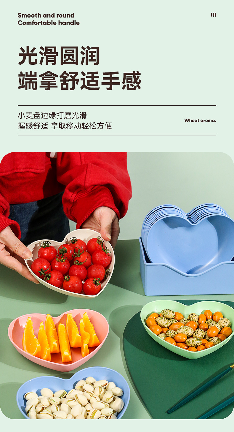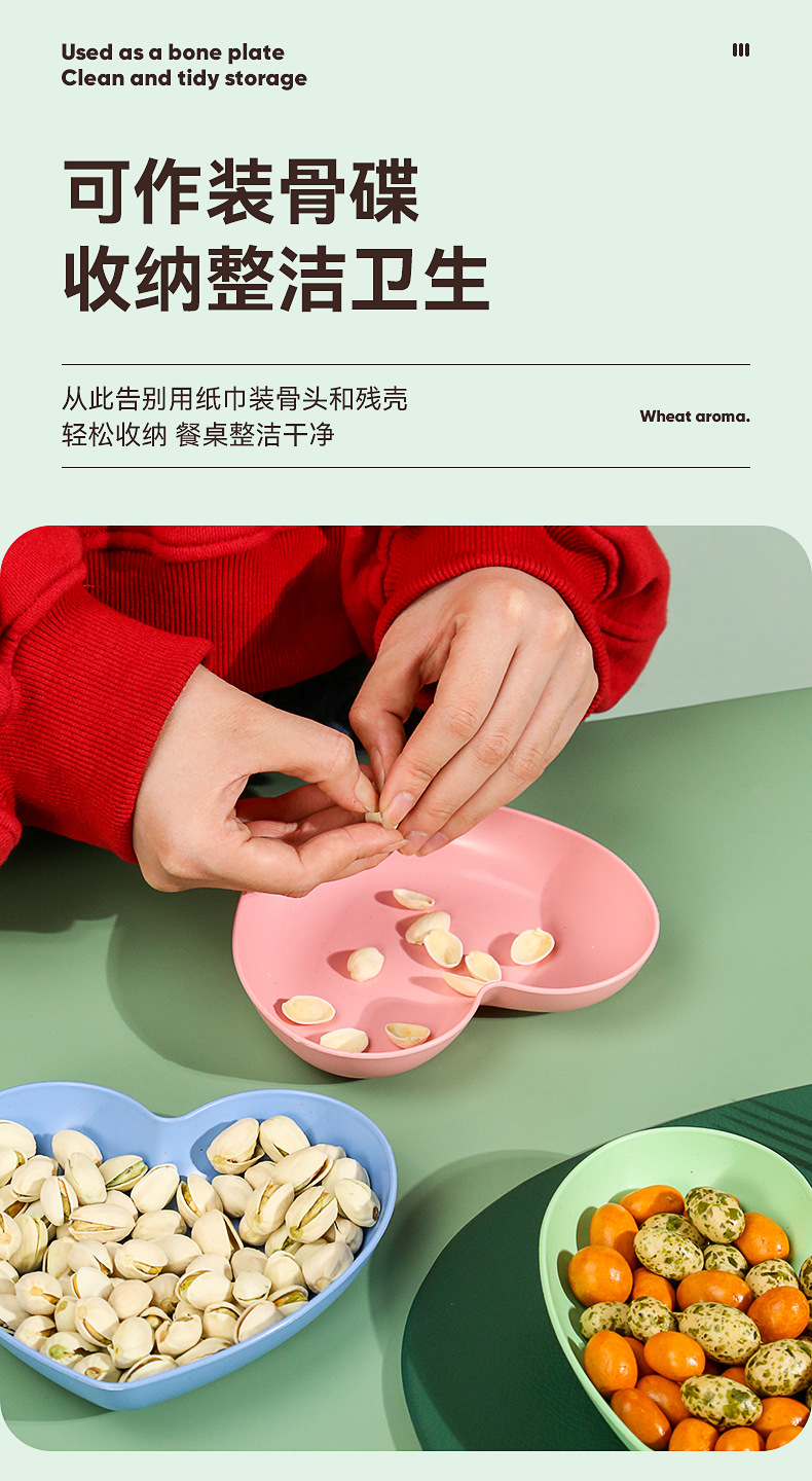 두꺼운 하트 모양의 밀 밀짚 뼈 뱉기 접시 테이블 뼈 접시 과일 접시 말린 과일 접시 견과류 사탕 간식 접시