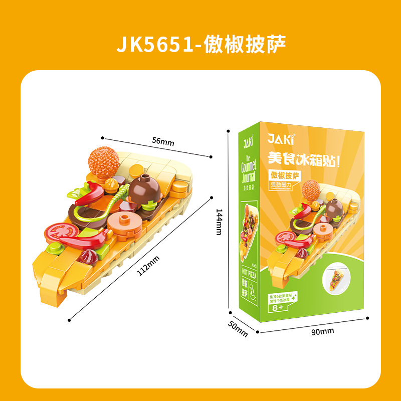 Jiaqi 5651-57 음식 냉장고 스티커 창조적 인 조립 피자 햄버거 샌드위치 어린이 공공 빌딩 블록 장난감