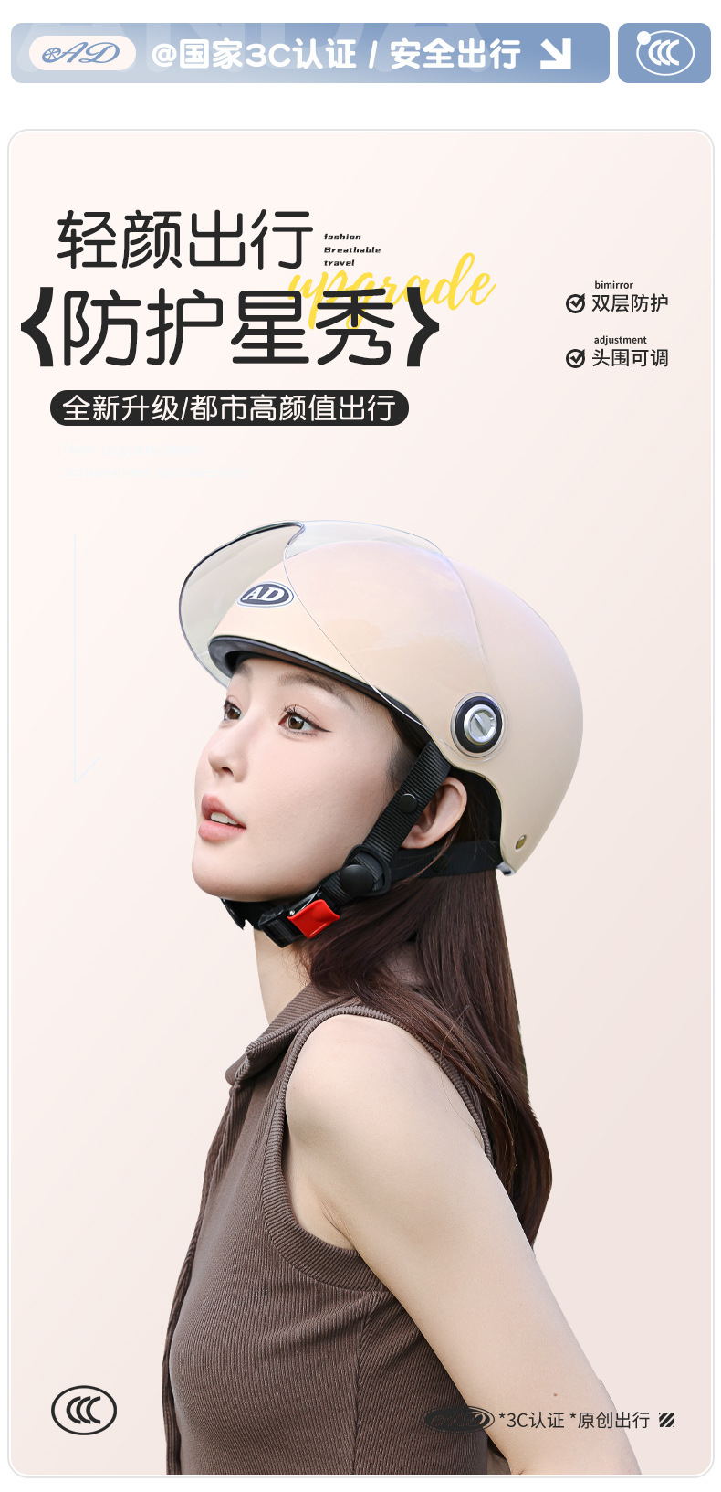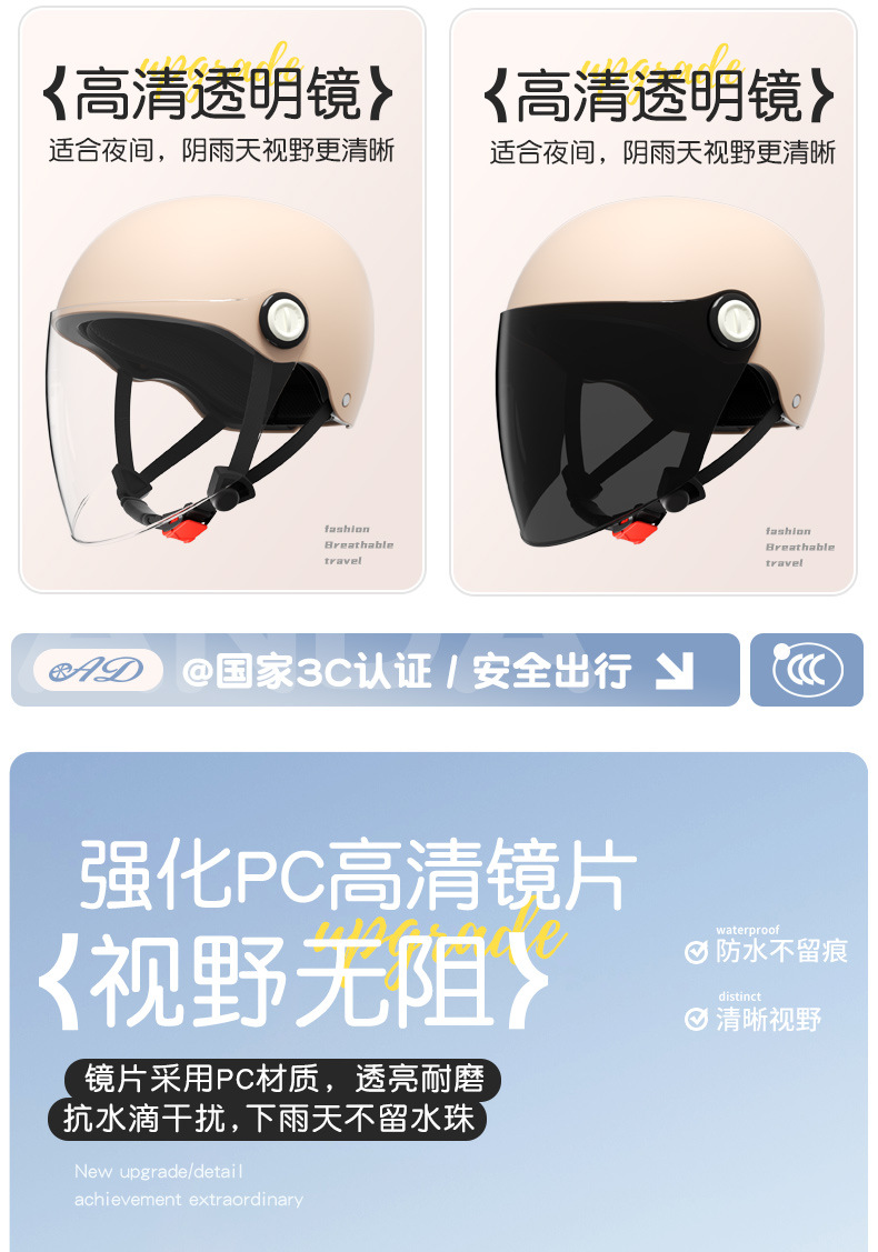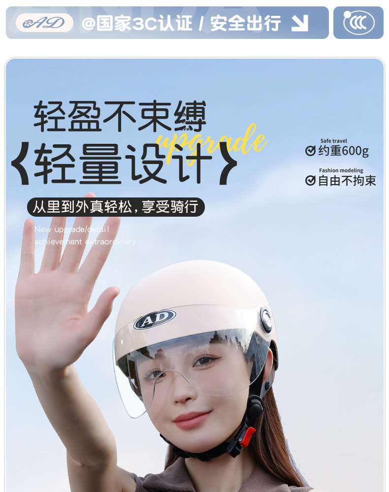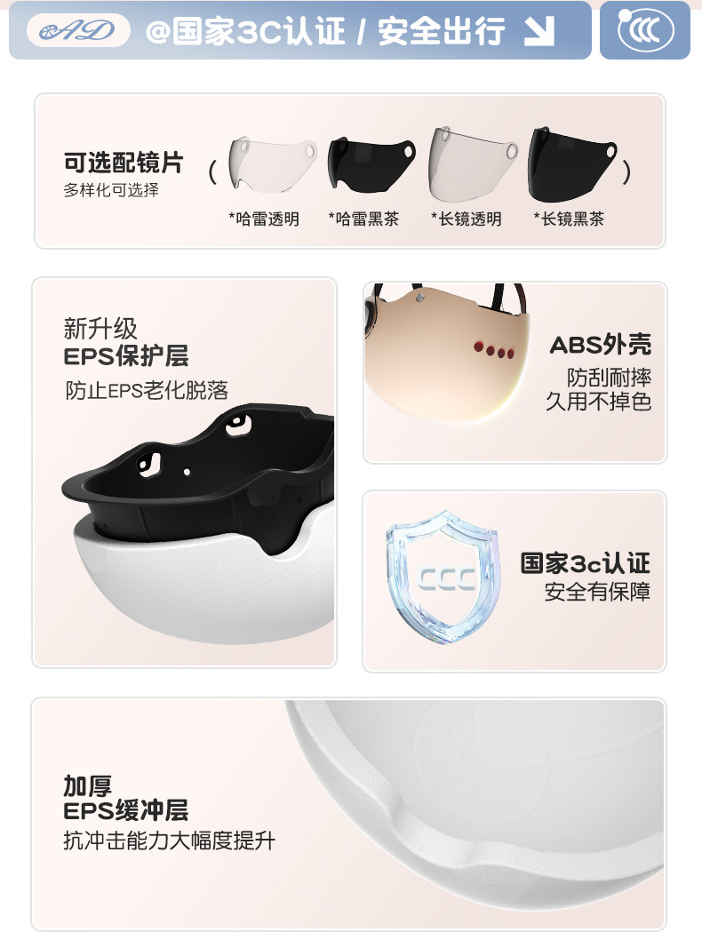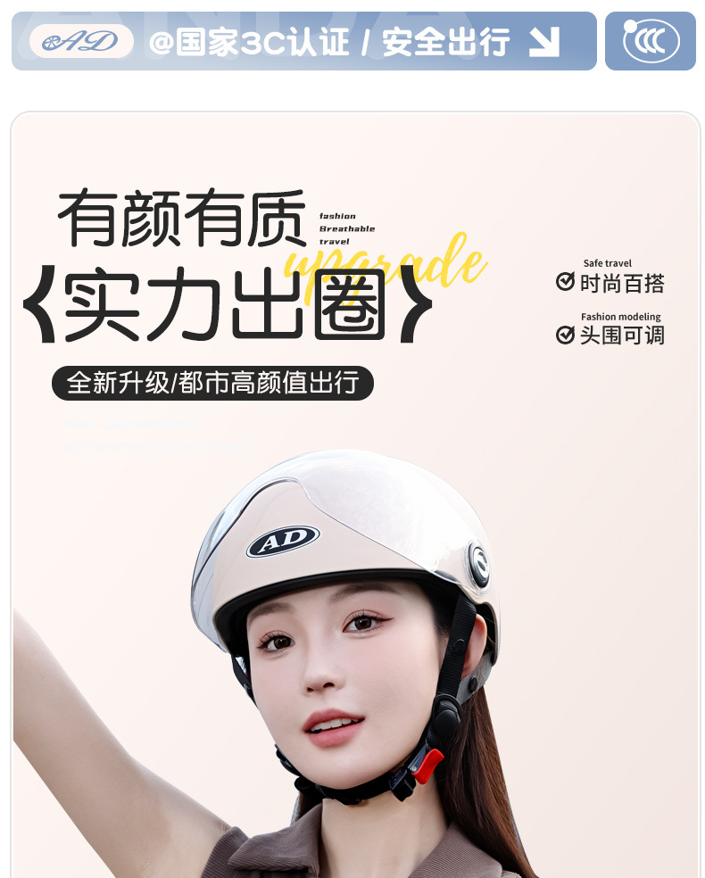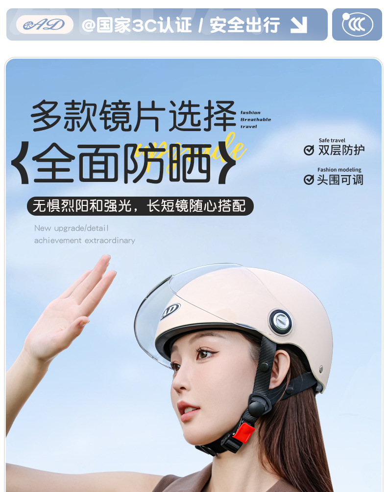 AD 전기 오토바이 헬멧 남녀공용 3C 인증 여름용 자외선 차단 반헬멧 전기차 사계절용 안전모