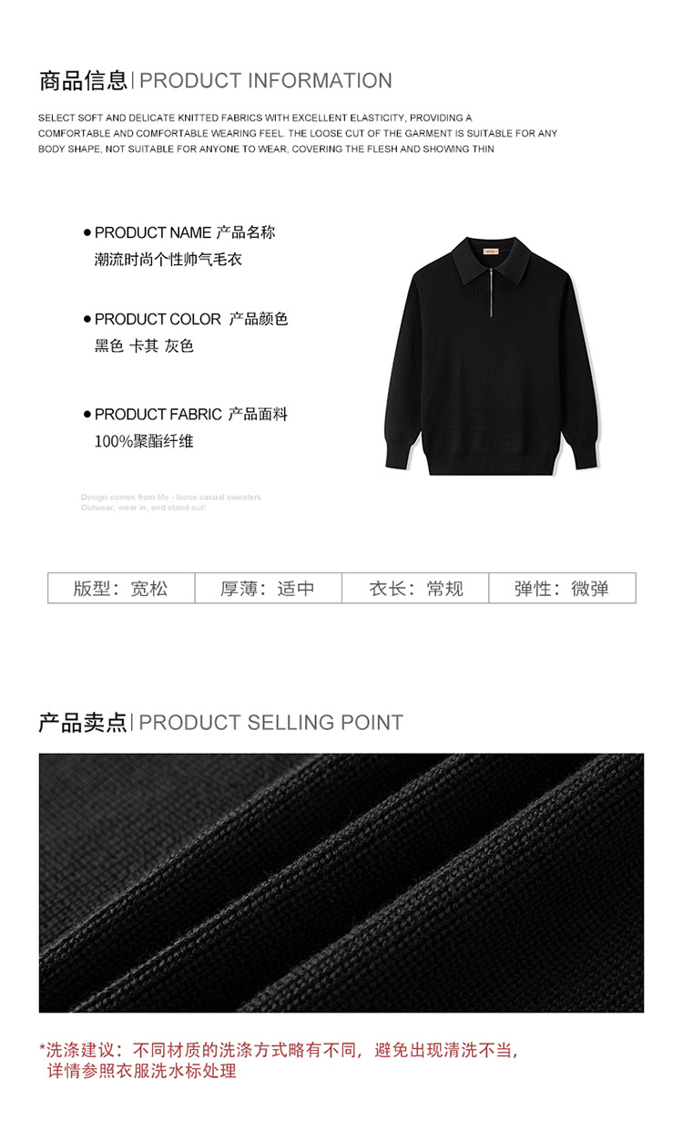 24 폴로 하프 Zip 남자의 가을과 겨울 풀오버 니트웨어 일본 스타일 유행 간단한 캐주얼 남성 스웨터 클래식 남성복스토어 가기