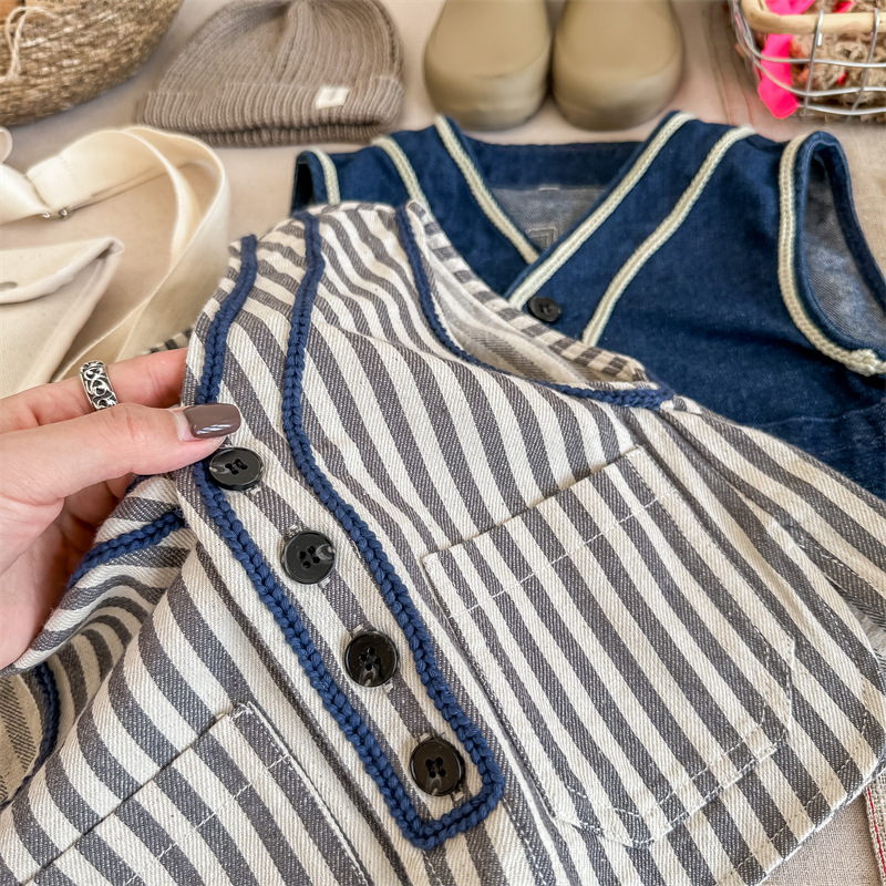 2025 가을 아동 의류 새로운 스타일 아동 한국 스타일 데님 조끼 소녀 가을 양복 조끼 123501