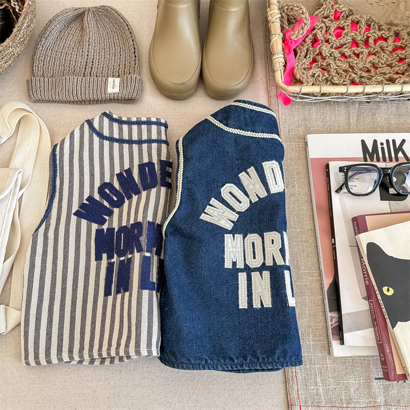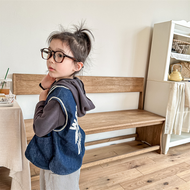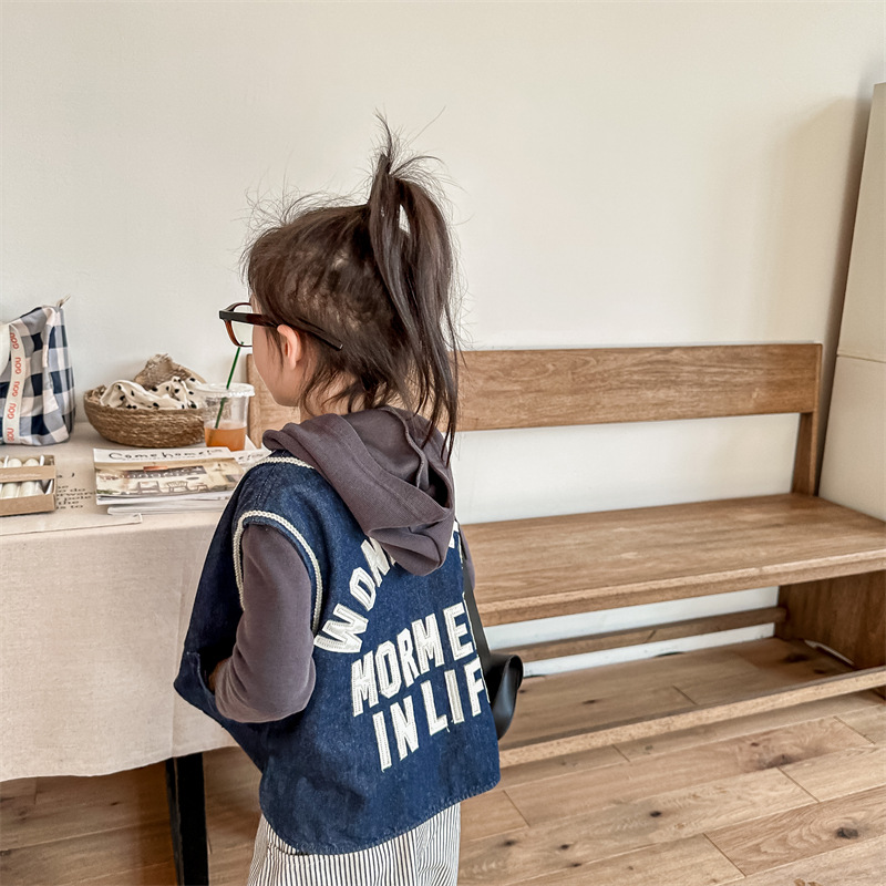 2025 가을 아동 의류 새로운 스타일 아동 한국 스타일 데님 조끼 소녀 가을 양복 조끼 123501스토어 가기