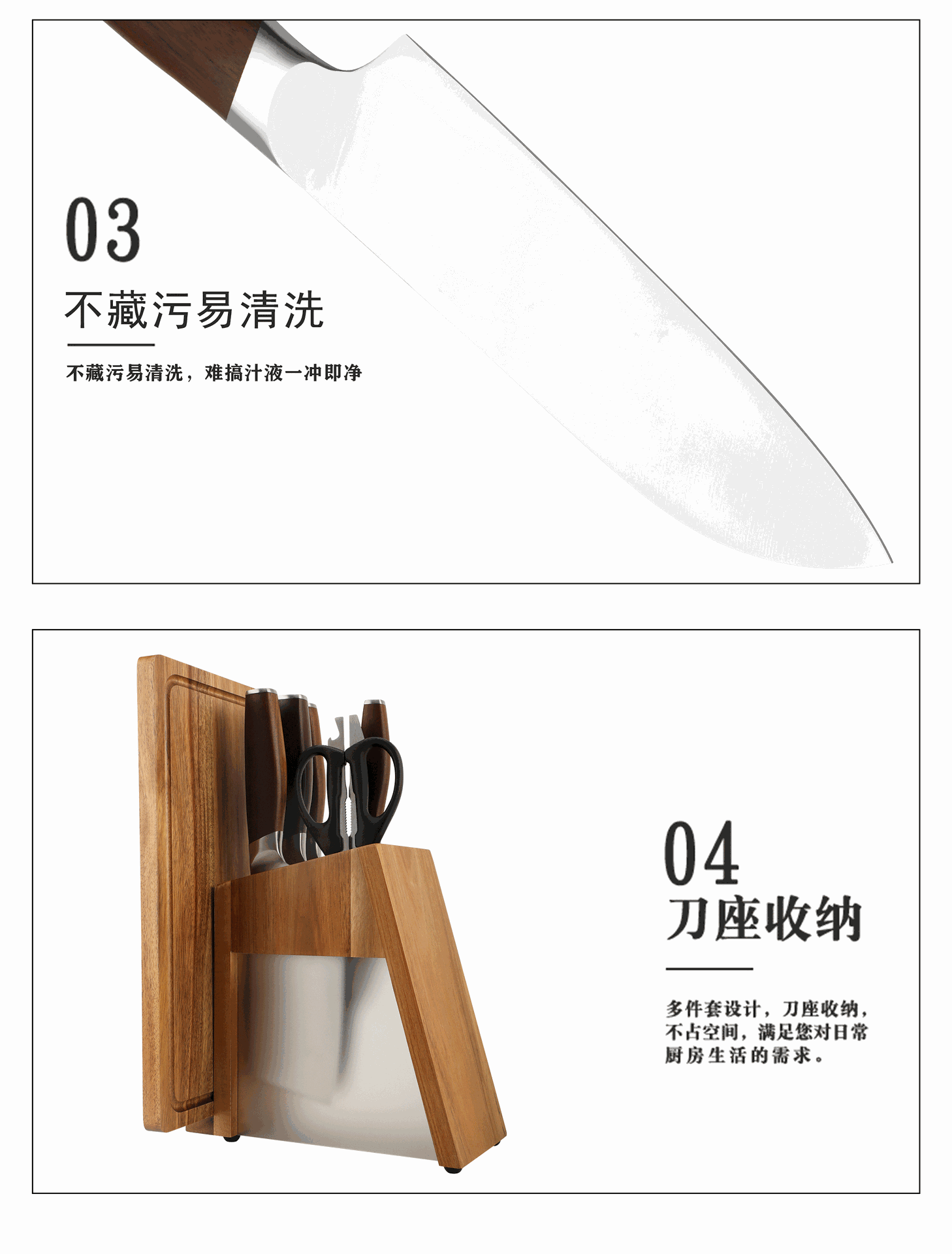 칼 6 조각 세트 스테인레스 스틸 주방 칼 나무 손잡이 조합 가구 선물 세트 나이프 양장 재고 도매스토어 가기