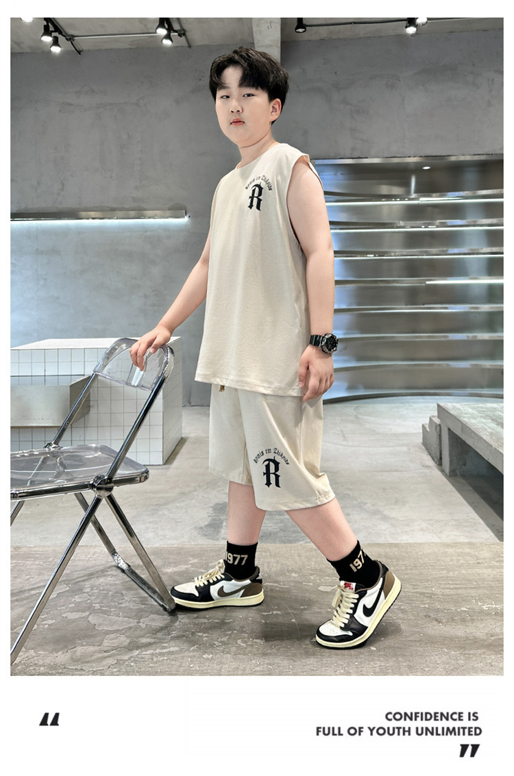 뚱뚱한 어린이 조끼 플러스 뚱뚱한 플러스 사이즈 어린이 여름 민소매 티셔츠 스포츠 조끼 2023 새로운 허들 컷 슬리브 아동복스토어 가기