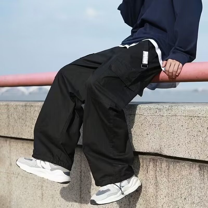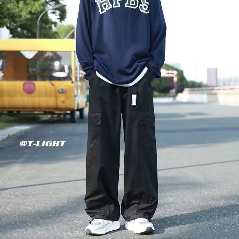 아메리칸 스타일 복고풍 바지 남성용 기능성 키 큰 낙하산 바지 하이 스트리트 트렌디 브랜드 스트레이트 느슨한 와이드 레그 러쉬 팬츠스토어 가기