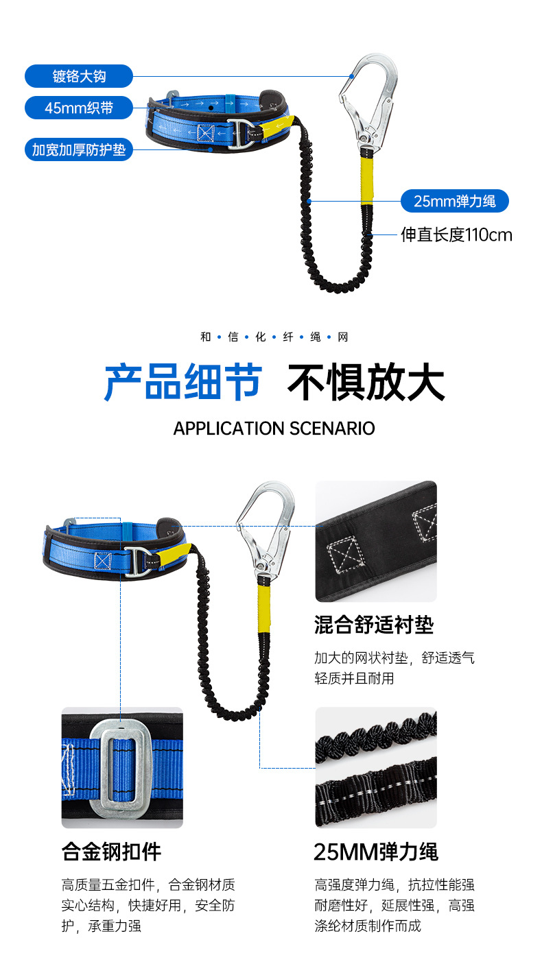 • 단일 허리 안전 벨트 크롬 도금 후크 탄성 로프
