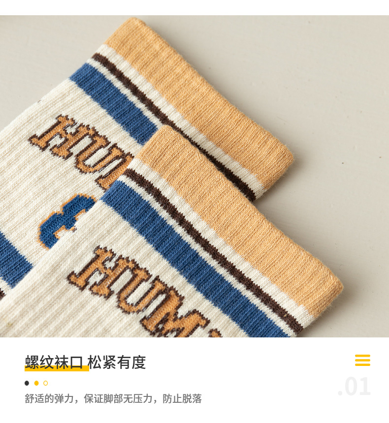 양말 여성 가을, 겨울 새로운 중간 튜브 양말 INS 조수 편지 줄무늬 일본면 양말 빗질 면화 숙녀 긴 양말 도매