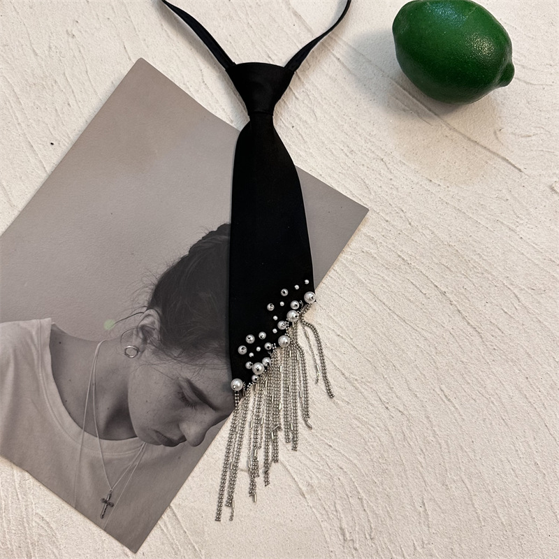 2023 새로운 디자인 중공업 술 넥타이 여성용 한국 진주 게으른 매듭없는 셔츠 블랙 타이 조수스토어 가기