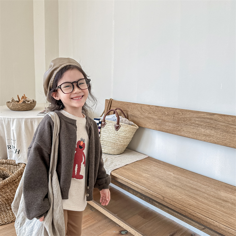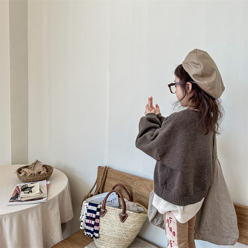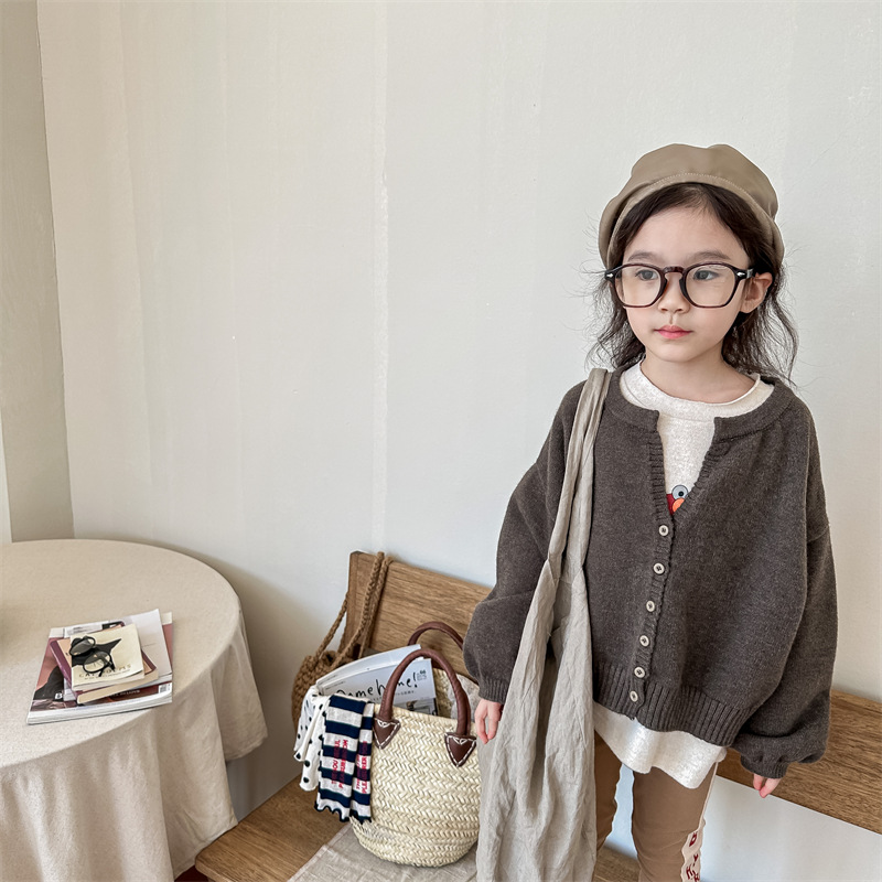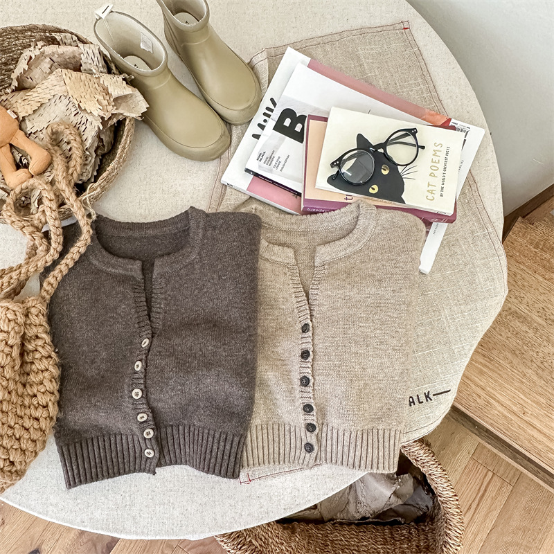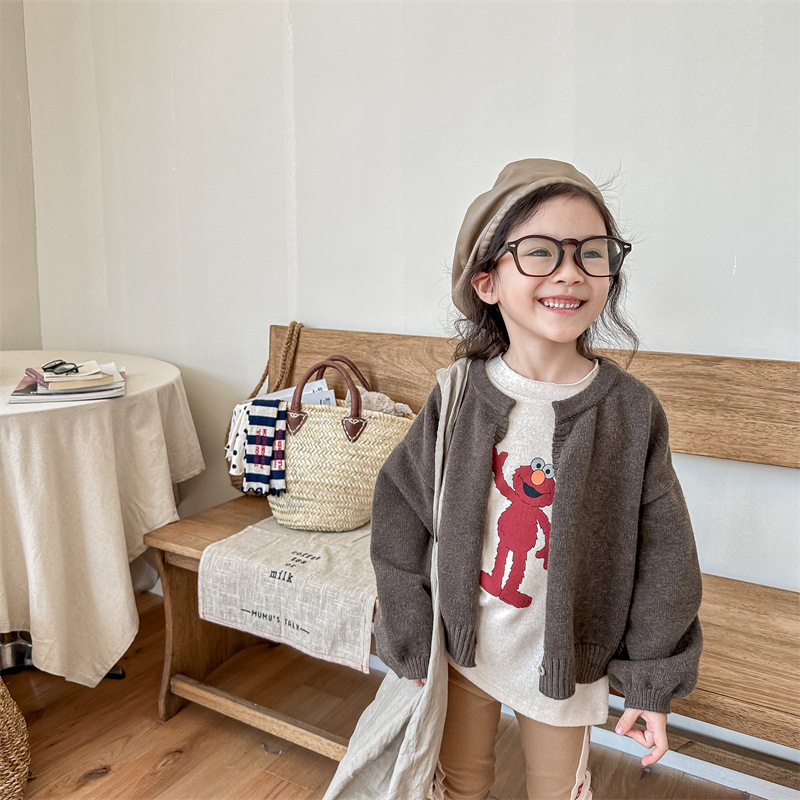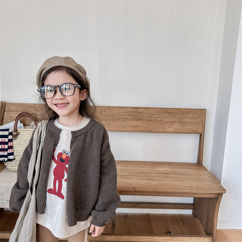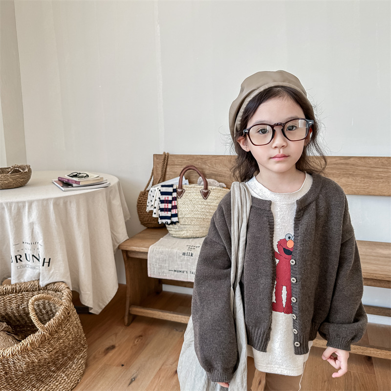 2025 아동 의류 가을 어린이 봄 의류 한국 스타일 스웨터 카디건 탑 스웨터 소년과 소녀 니트 스웨터 123568