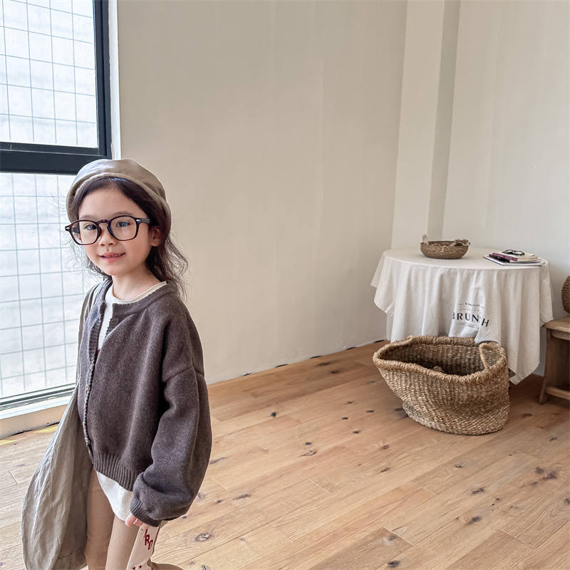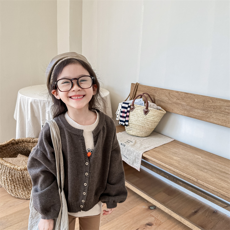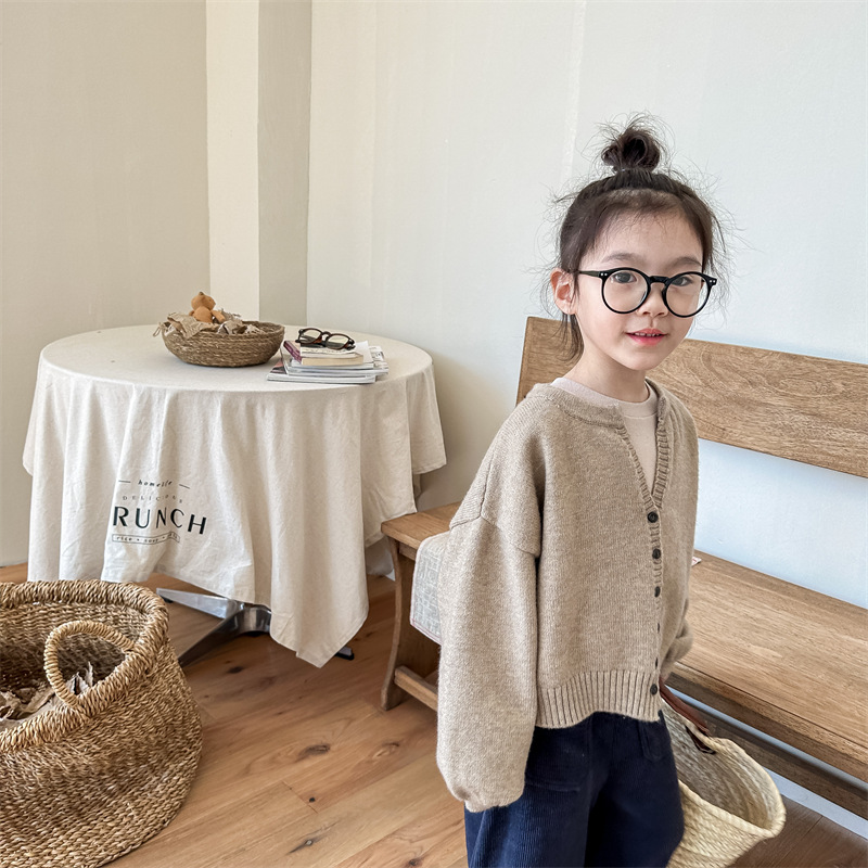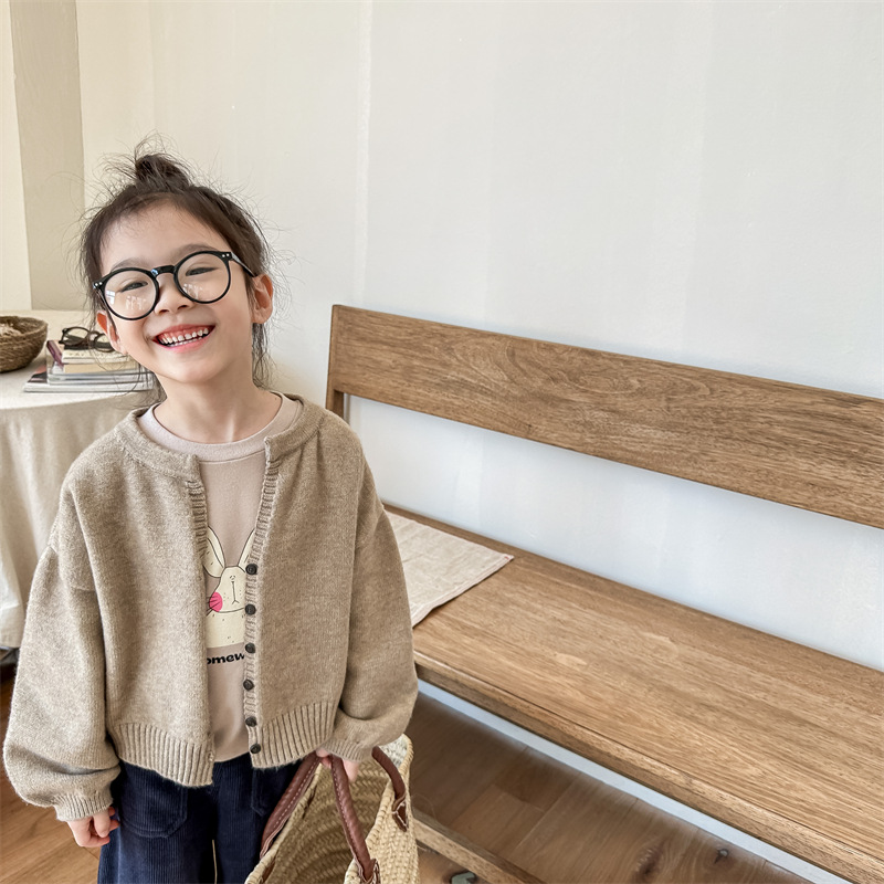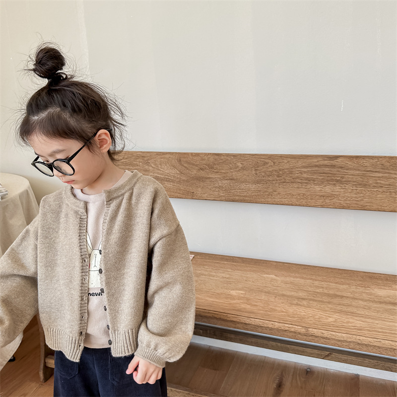 2025 아동 의류 가을 어린이 봄 의류 한국 스타일 스웨터 카디건 탑 스웨터 소년과 소녀 니트 스웨터 123568스토어 가기