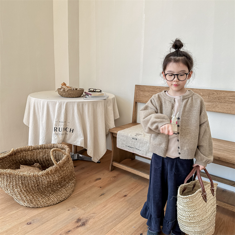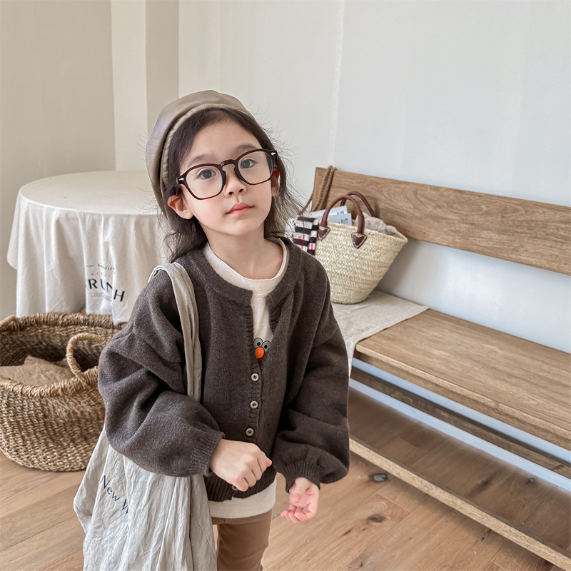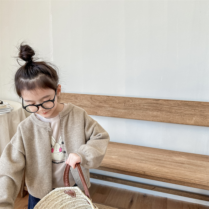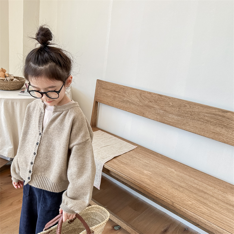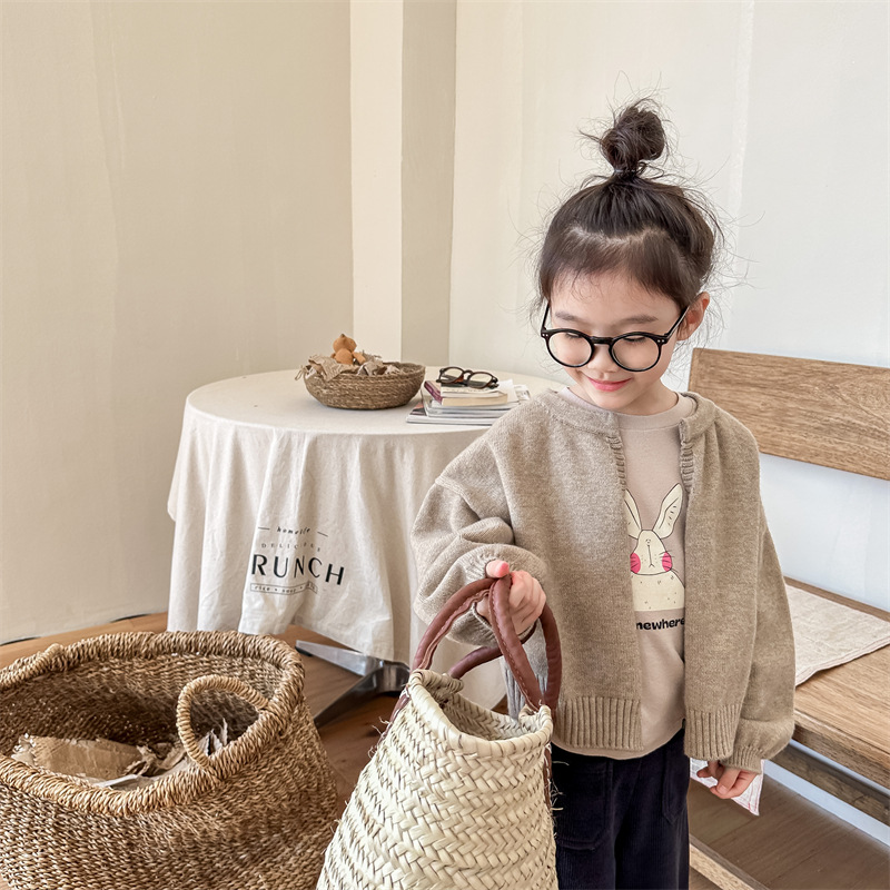 2025 아동 의류 가을 어린이 봄 의류 한국 스타일 스웨터 카디건 탑 스웨터 소년과 소녀 니트 스웨터 123568스토어 가기