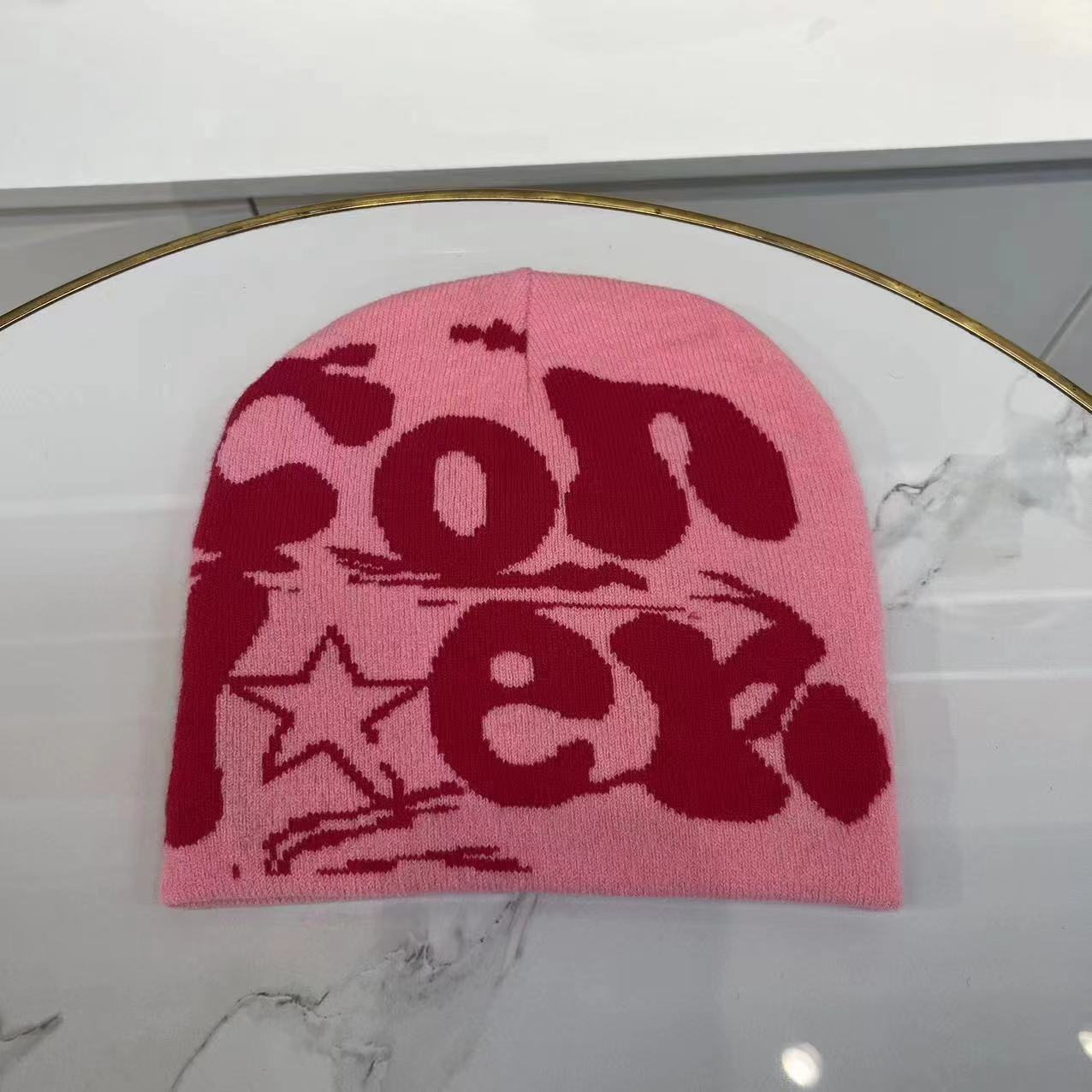• Doudou 영어 편지 울 모자-커피 + 핑크