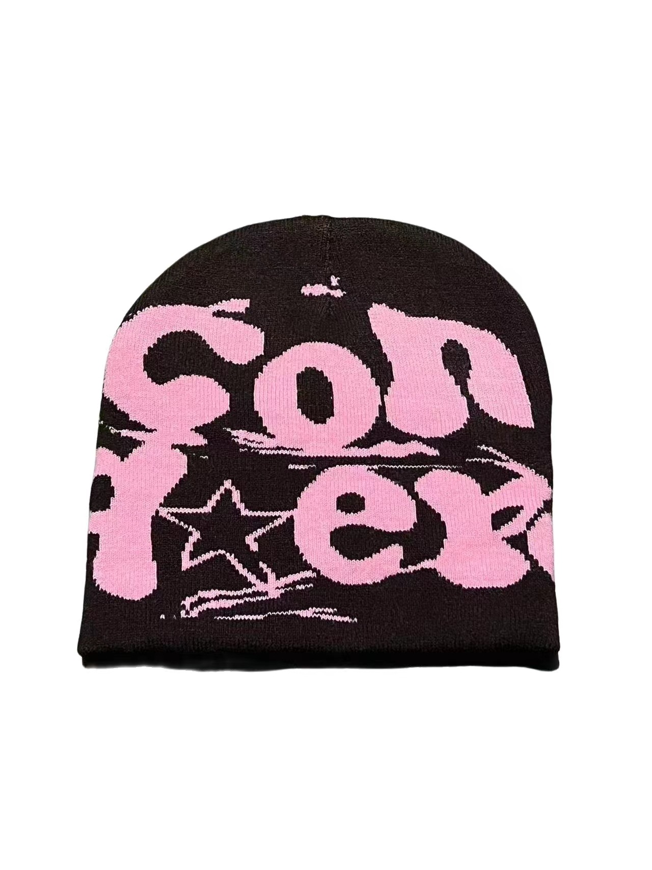 • Doudou 영어 편지 울 모자-블랙 + 핑크