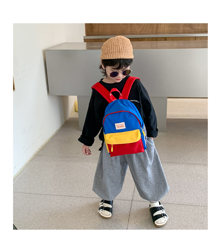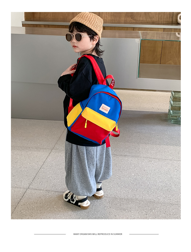 한국식 유치원 배낭 간단한 경량 3-6 세 어린이 캔버스 대비 색상 작은 책가방 소년의 여행 배낭