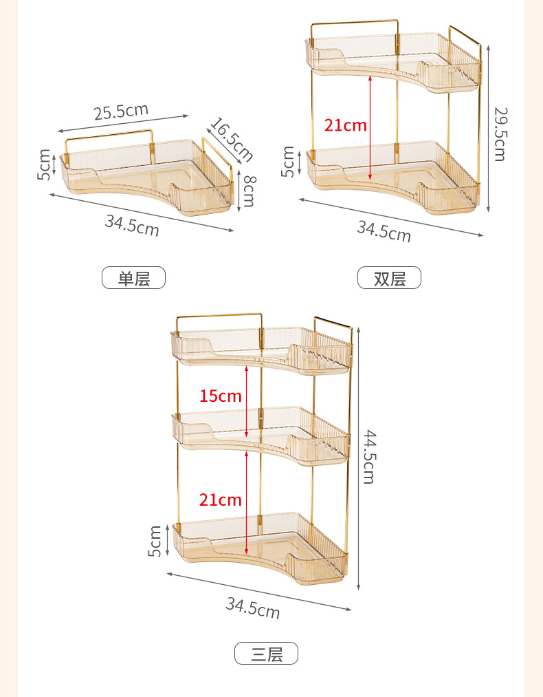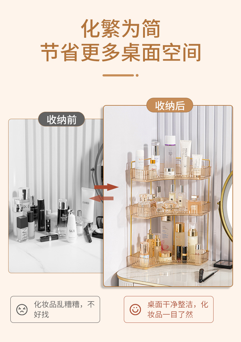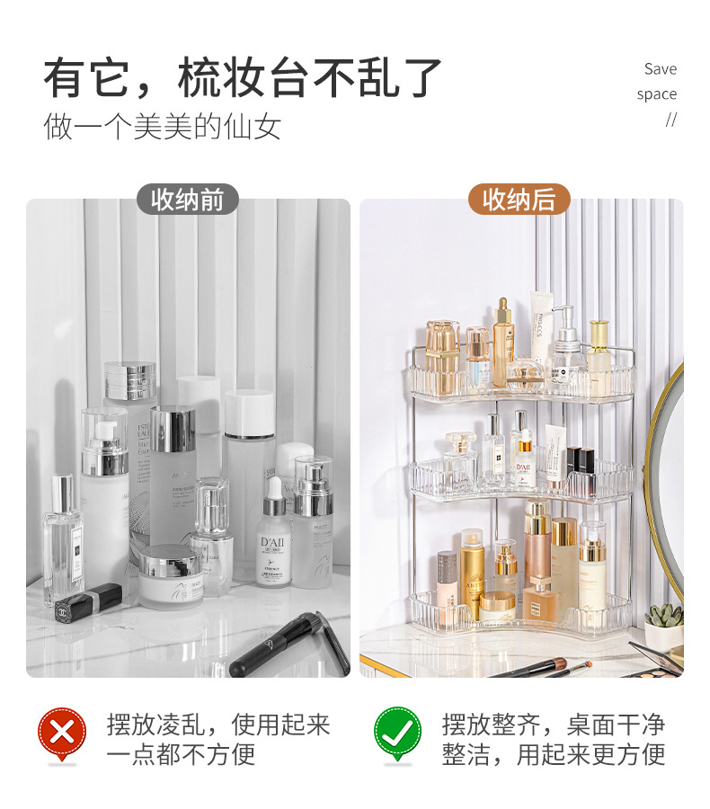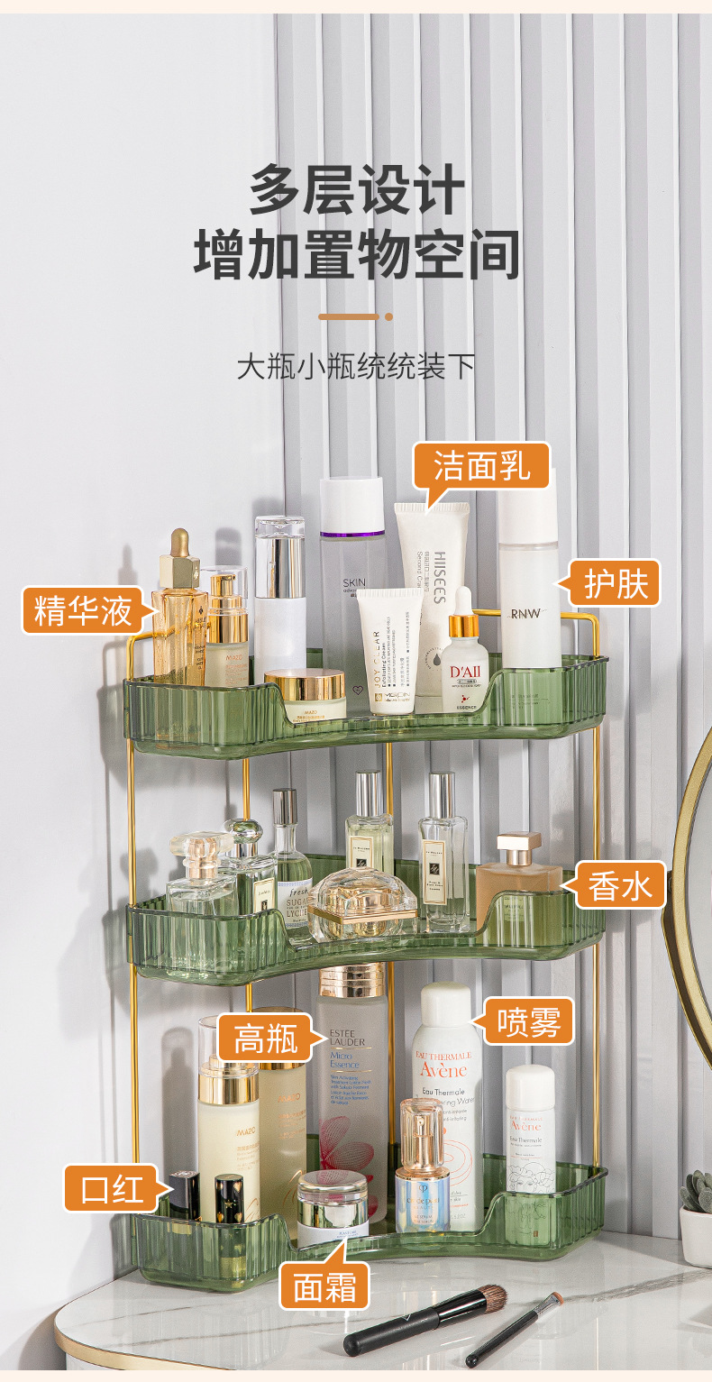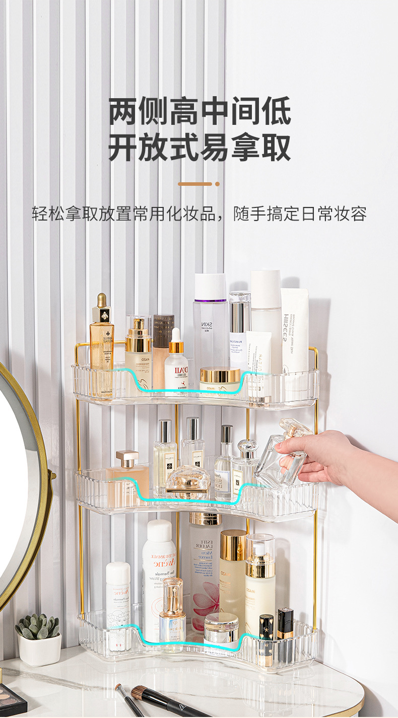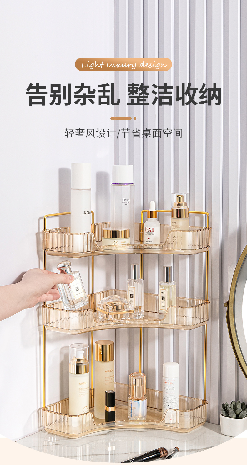 가벼운 럭셔리 코너 화장품 스토리지 랙 욕실 보석 데스크탑 스토리지 박스 랙 아마존 다이파 공장