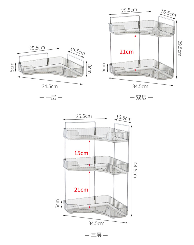 • 삼각형 저장 랙 투명 2 층 (실버 극)