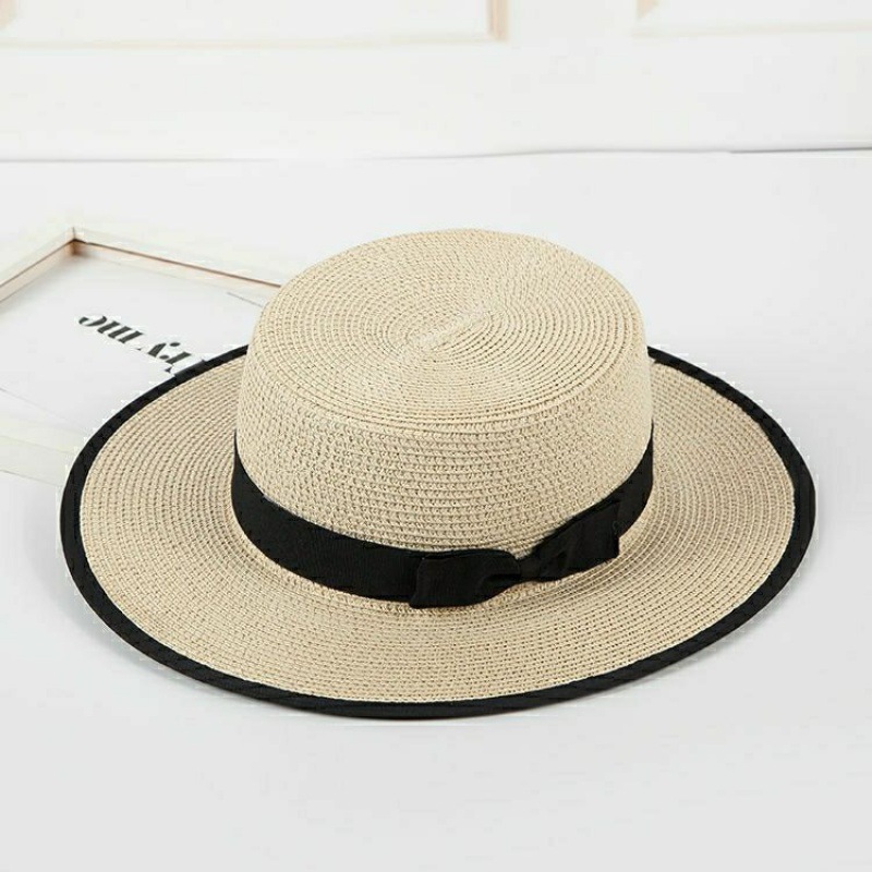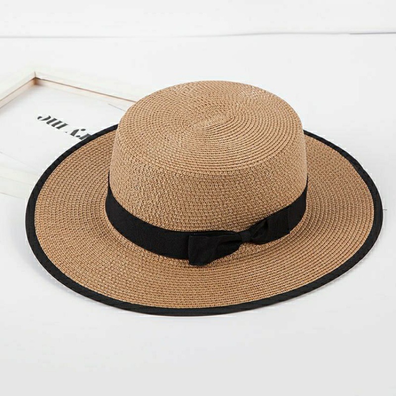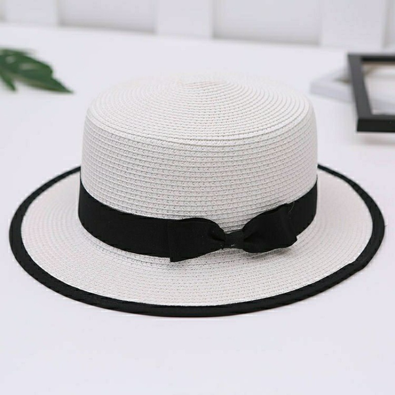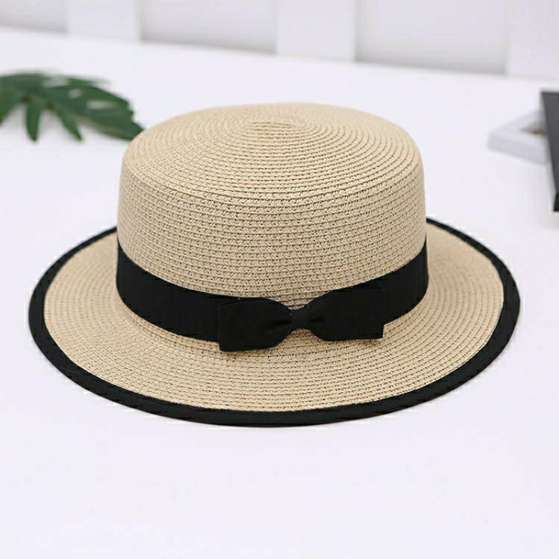 모자 여성 여름 양산 해변 모자 태양 보호 플랫 브림 태양 밀짚 모자 도매 플랫 탑 영국 작은 신선한 모자