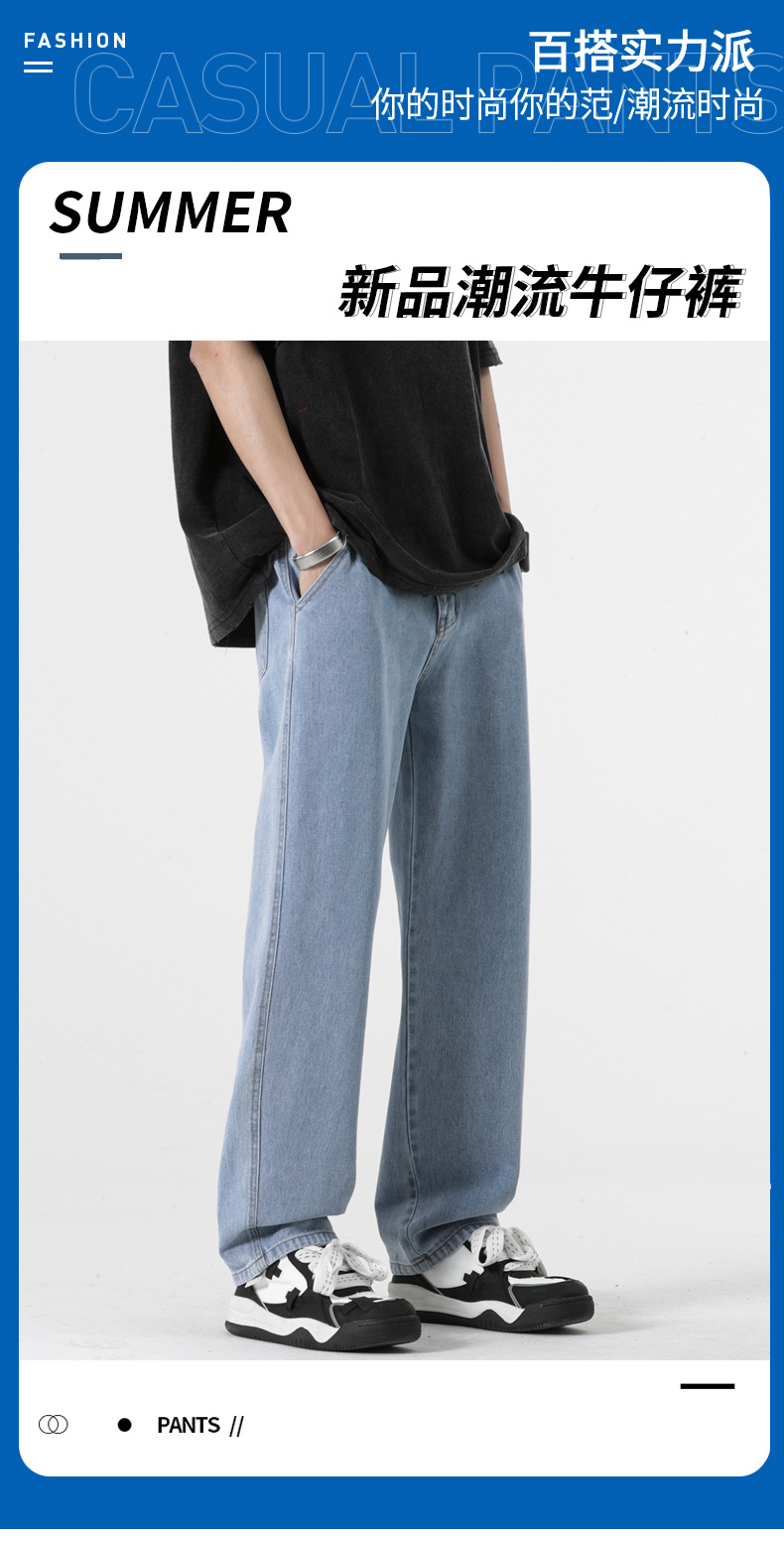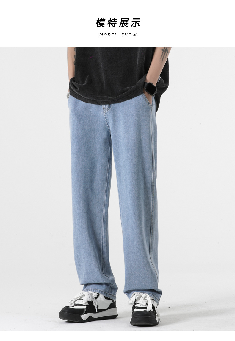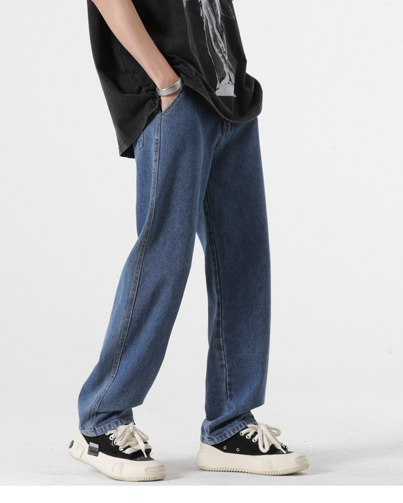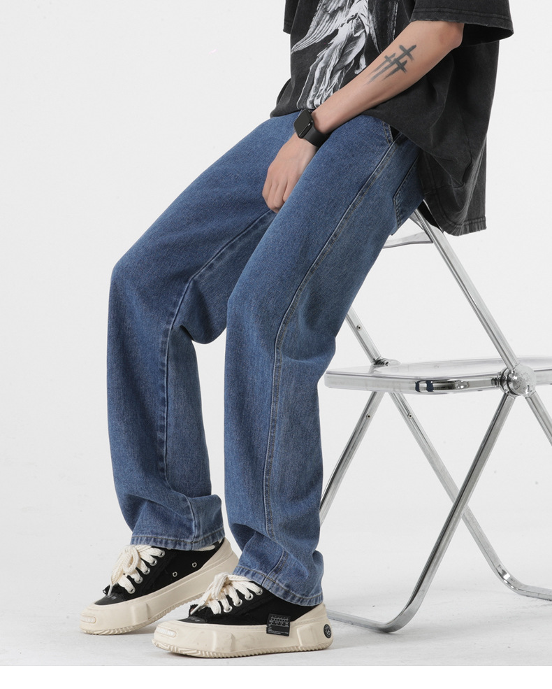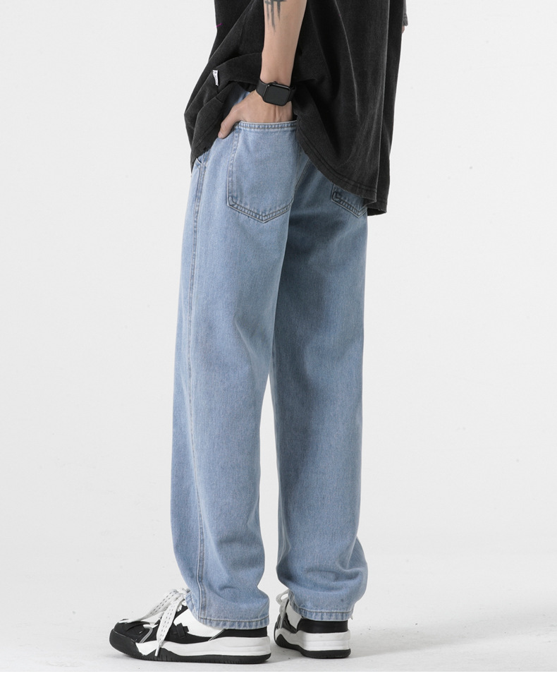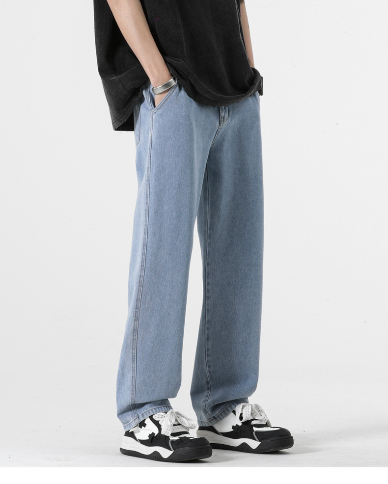 라이트 블루 청바지 남자의 미국 스타일 복고풍 십대 스트레이트 느슨한 유행 브랜드 와이드 다리 바지 새로운 스타일 소년 긴 바지